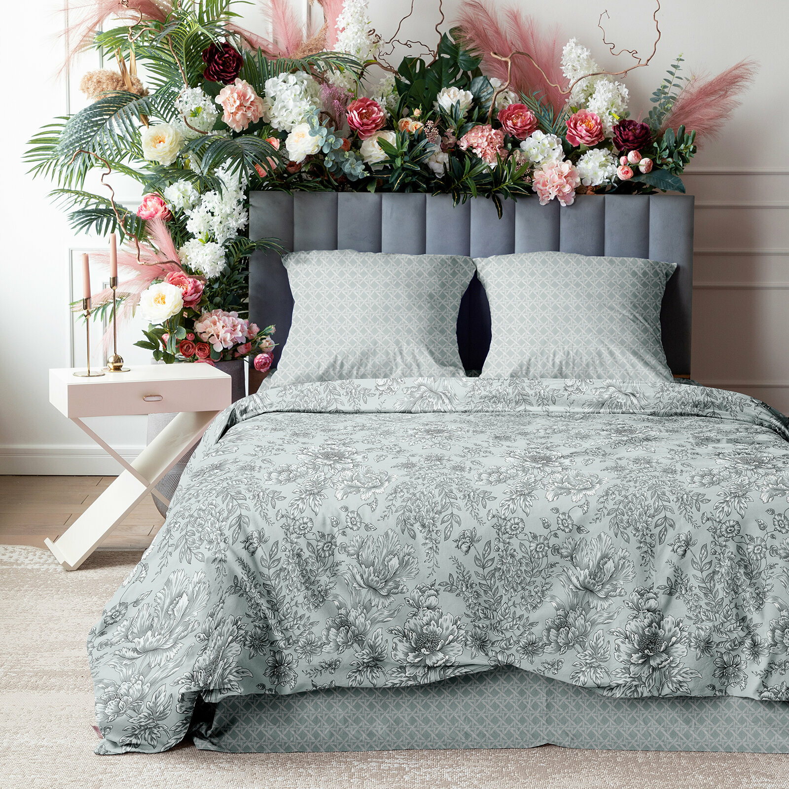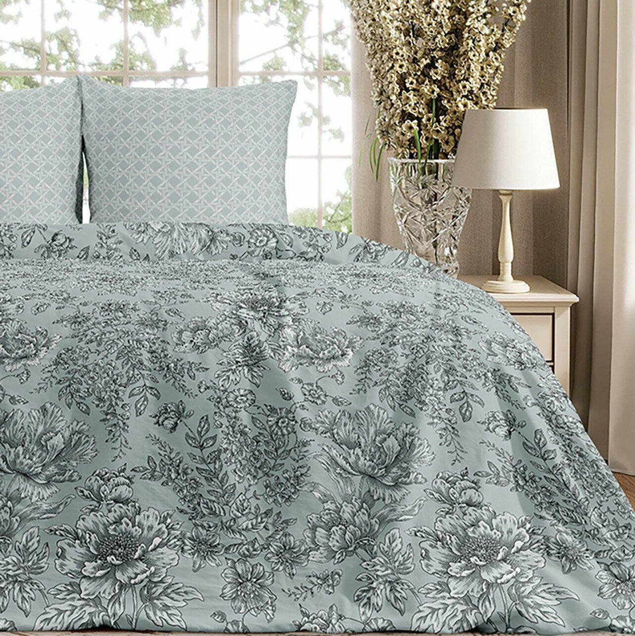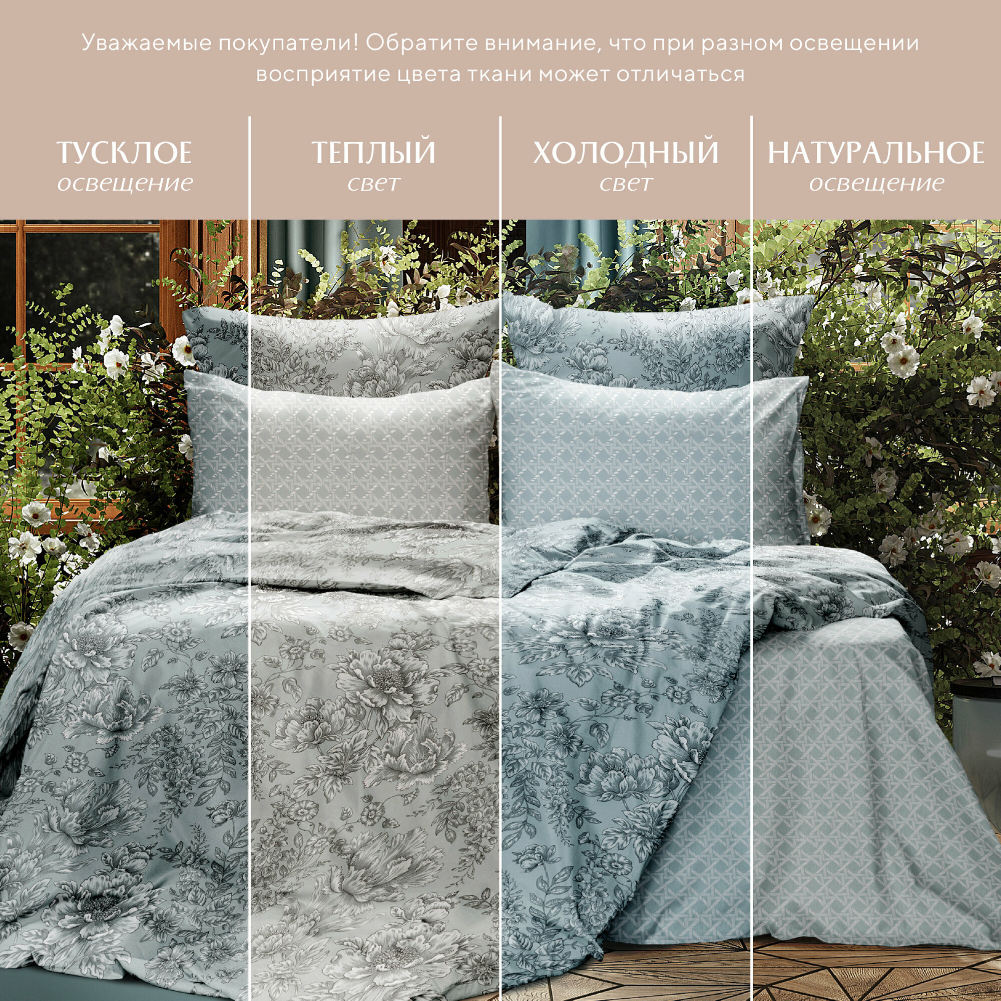 Постельное белье 1.5 спальное Mia Cara, Перкаль, нав. 70х70, Чарующий сад, пастельно-бирюзовый