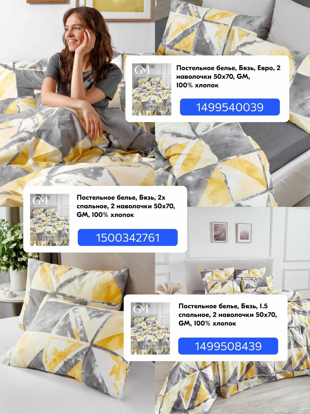 Постельное белье, Бязь, 1.5 спальное, 2 наволочки 50х70, GM, Cozy evening 100% хлопок