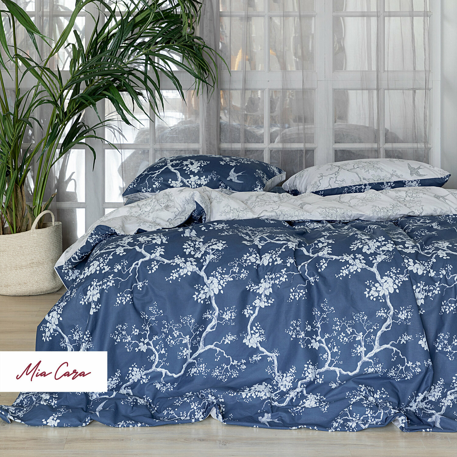 Постельное белье Евро Mia Cara, Поплин, нав. 70х70, Chinoiserie blu (Dolce Vita)