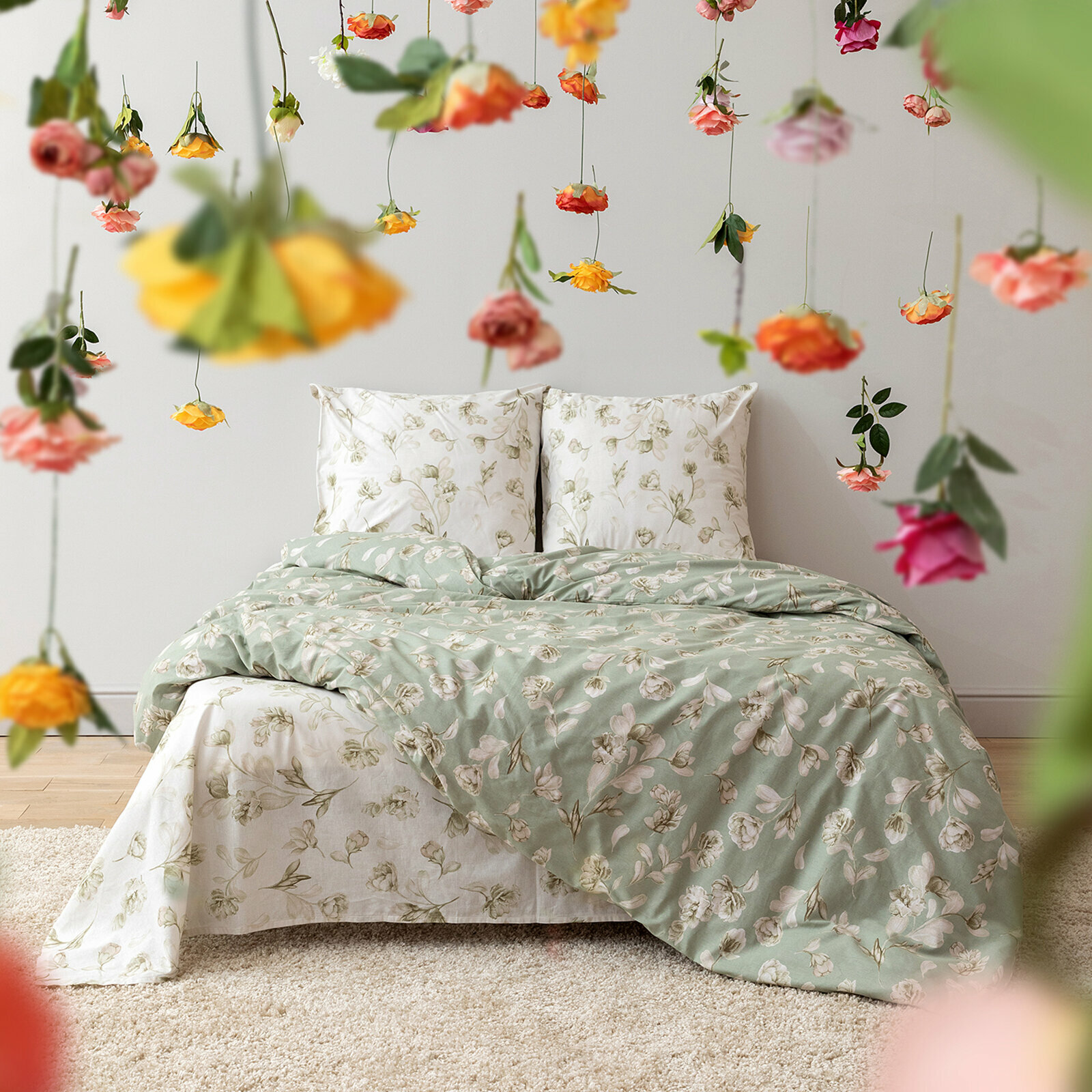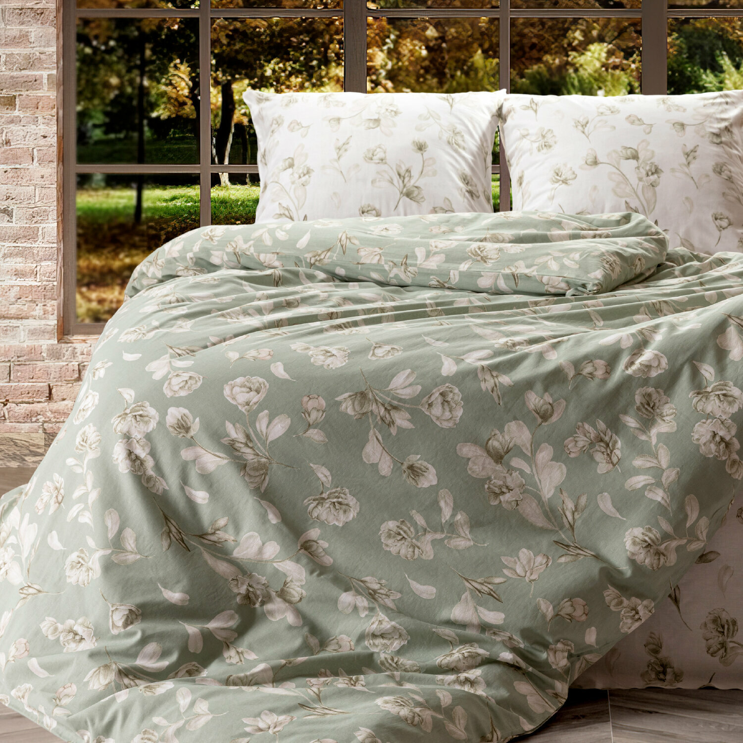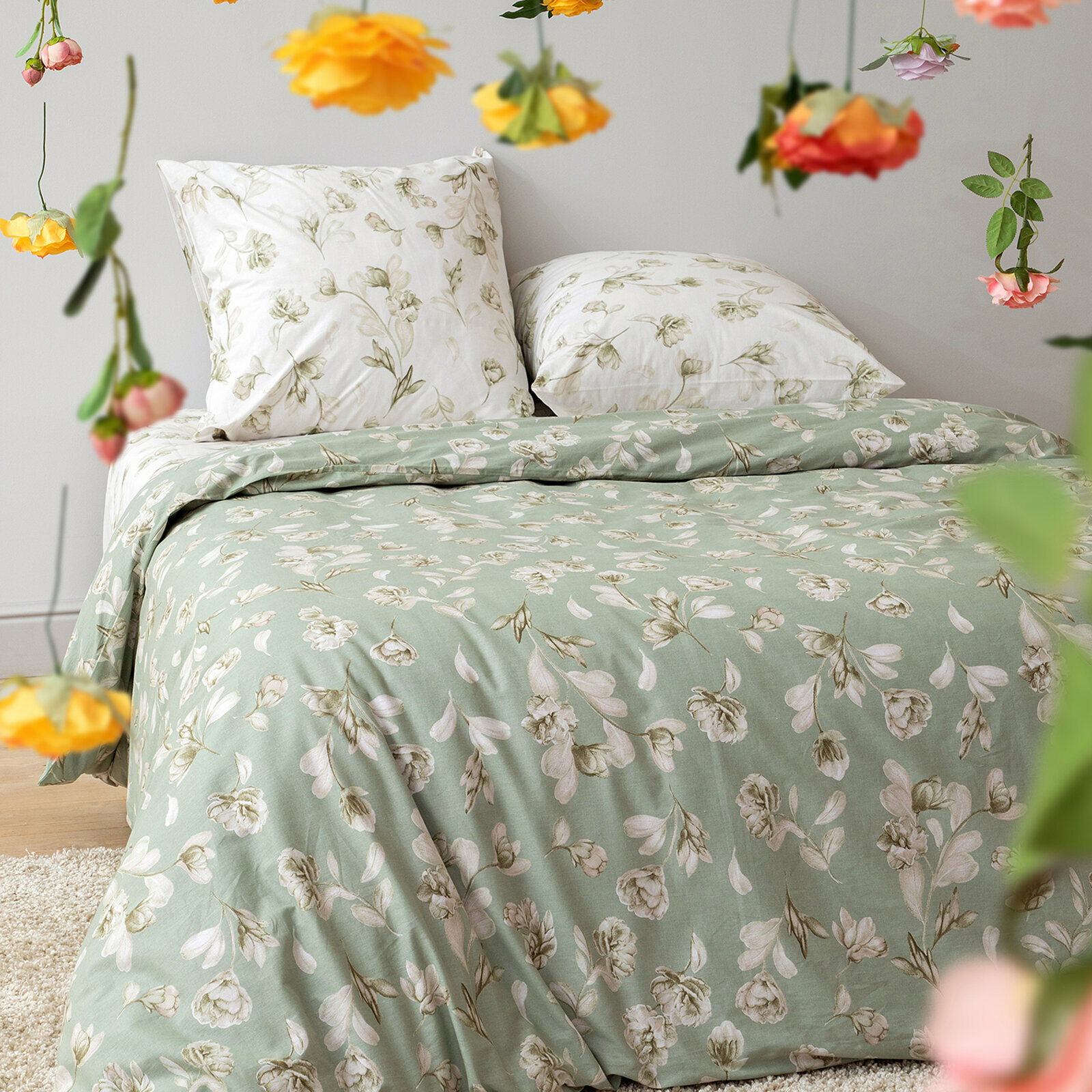 Постельное белье Евро Mia Cara, Поплин, нав. 50х70, Camilla light green (Dolce Vita)