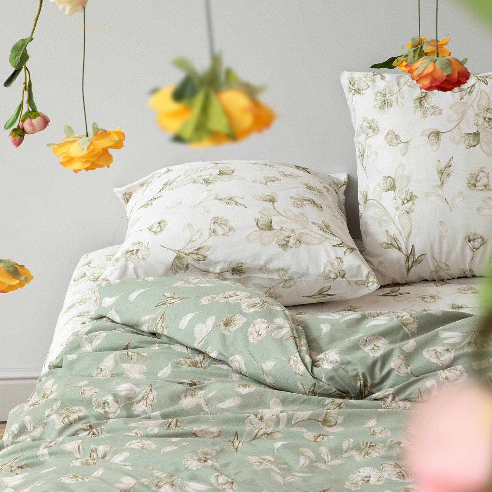 Купить Постельное белье Евро Mia Cara, Поплин, нав. 70х70, Camilla light green (Dolce Vita)