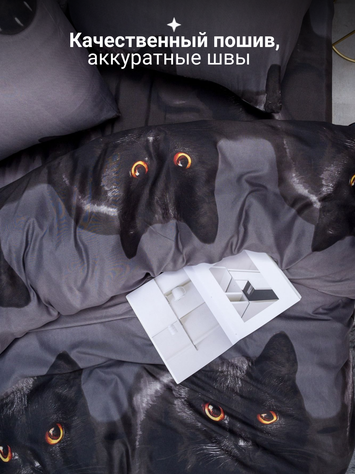 СохранитьПостельное белье 1.5 спальное Павлина Черный котик, Полисатин, наволочки 70x70 интересное: