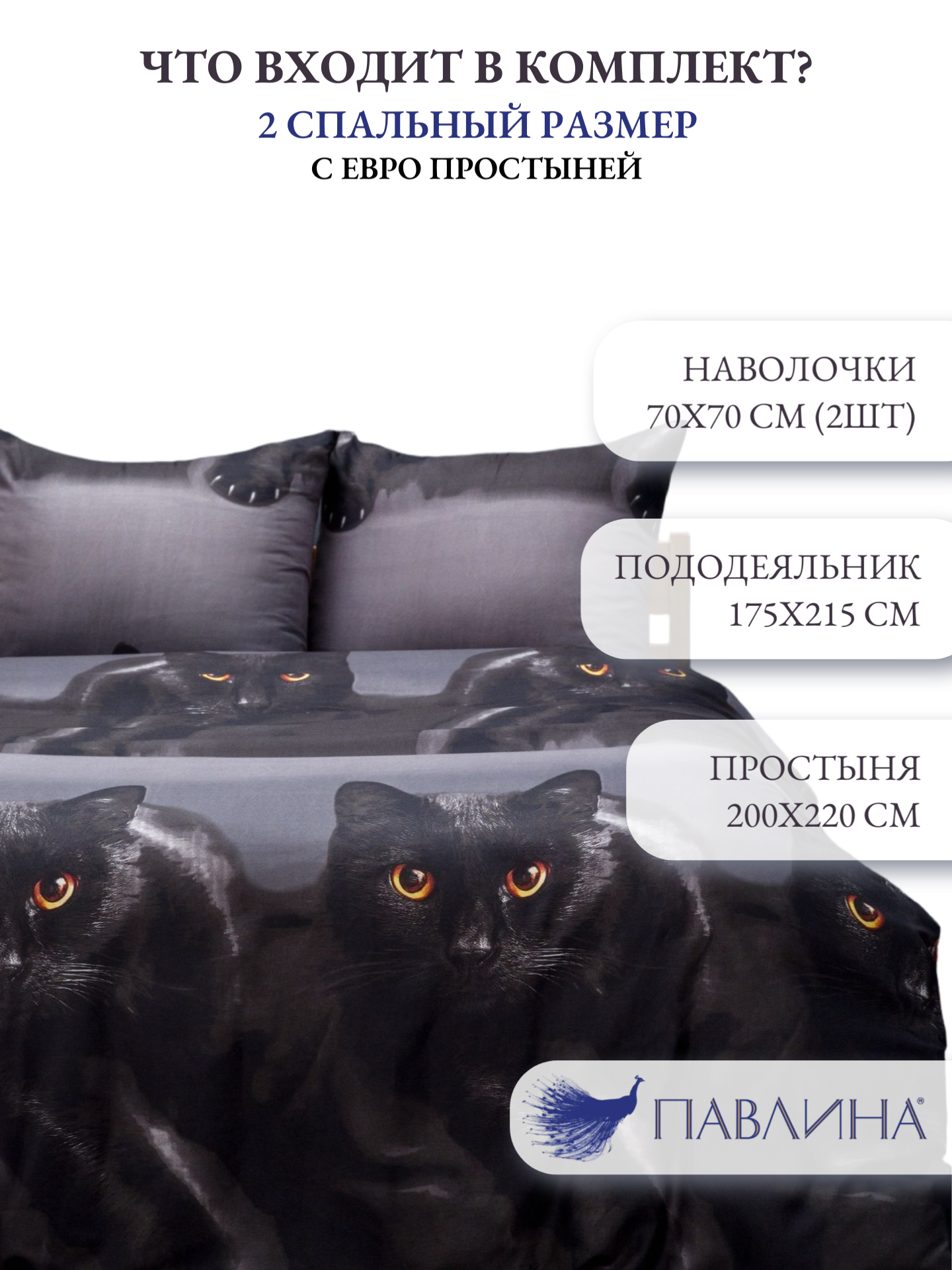 СохранитьПостельное белье 2 спальное с европростыней Павлина Черный котик, Полисатин, наволочки 70x70 интересное: