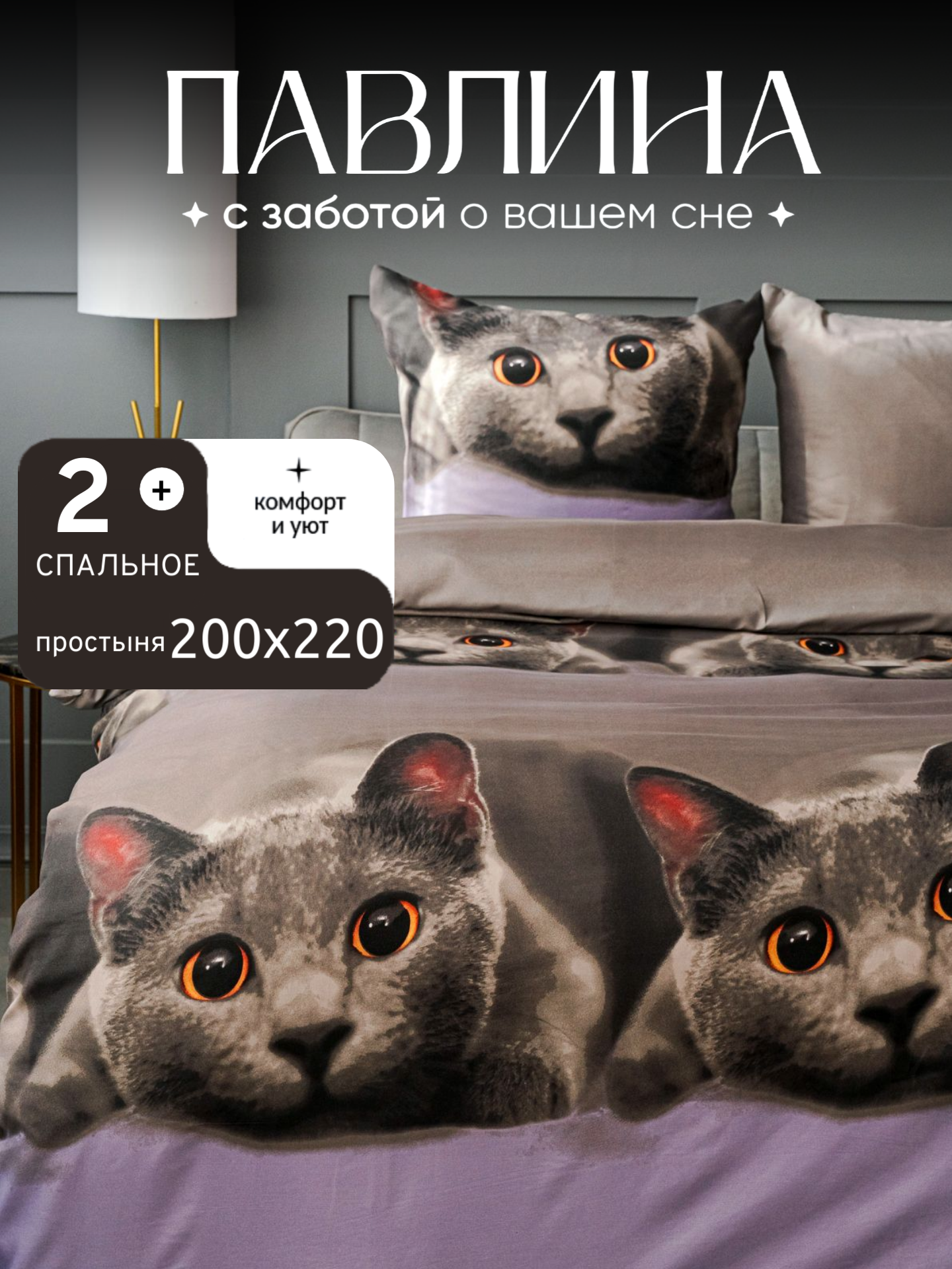 СохранитьПостельное белье 2 спальное с европростыней Павлина Серый котик, Полисатин, наволочки 70x70 интересное:
