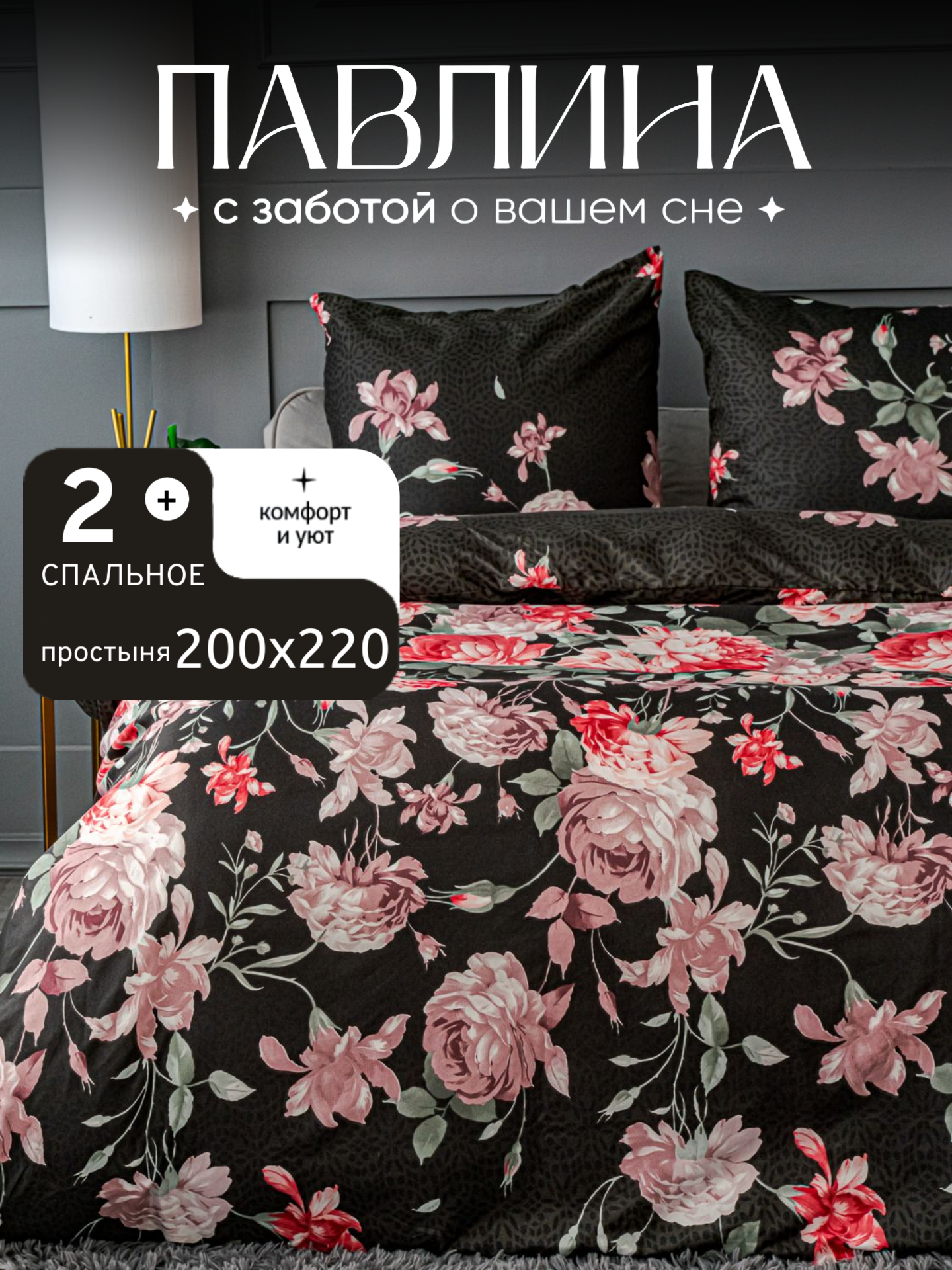 Постельное белье 2 спальное с европростыней Павлина Пионы, полисатин, наволочки 70x70 интересное:
