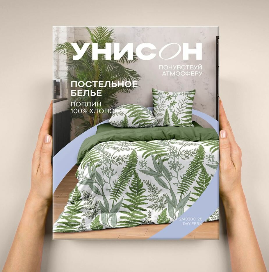 СохранитьПостельное белье 1.5 спальное Унисон, Поплин, нав. 50х70, Day Fern интересное: