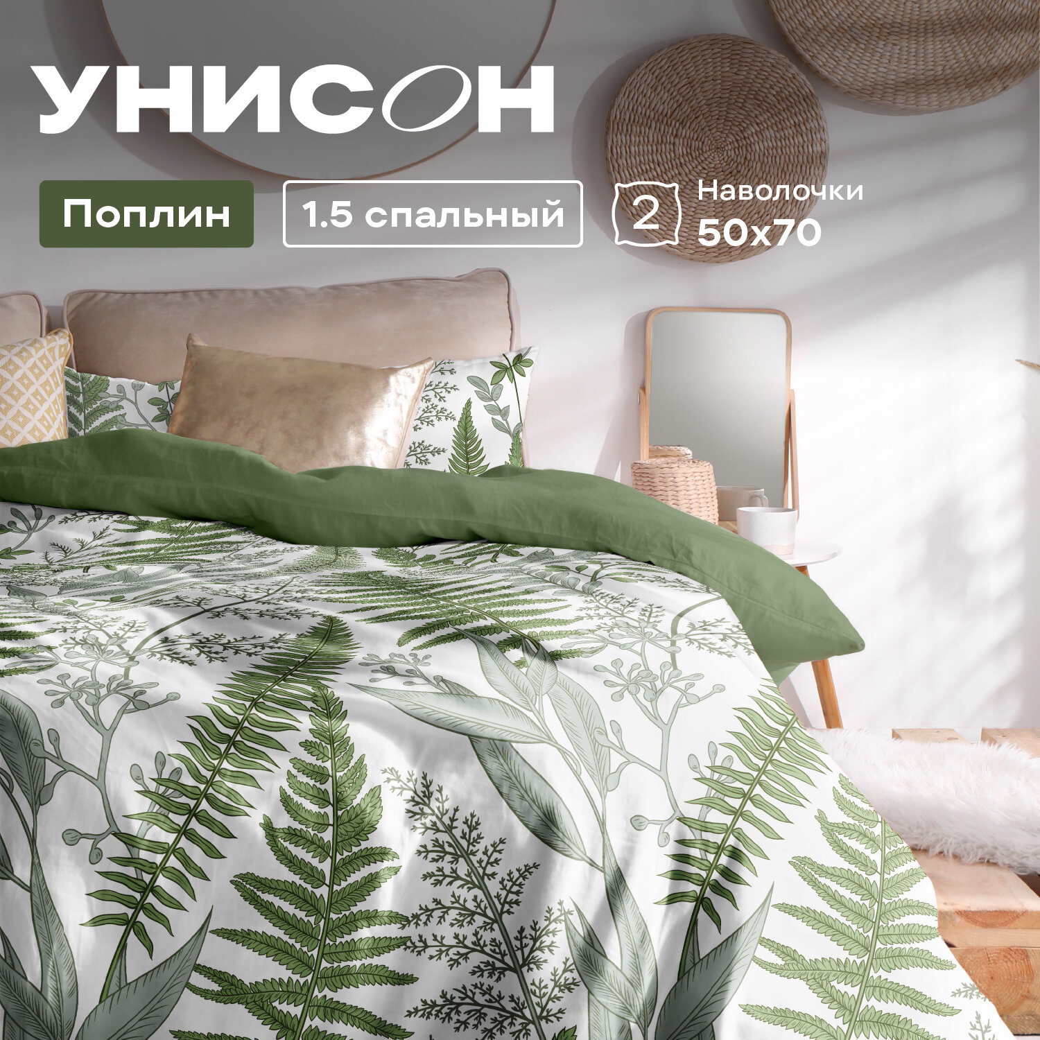 Постельное белье 1.5 спальное Унисон, Поплин, нав. 70х70, Day Fern