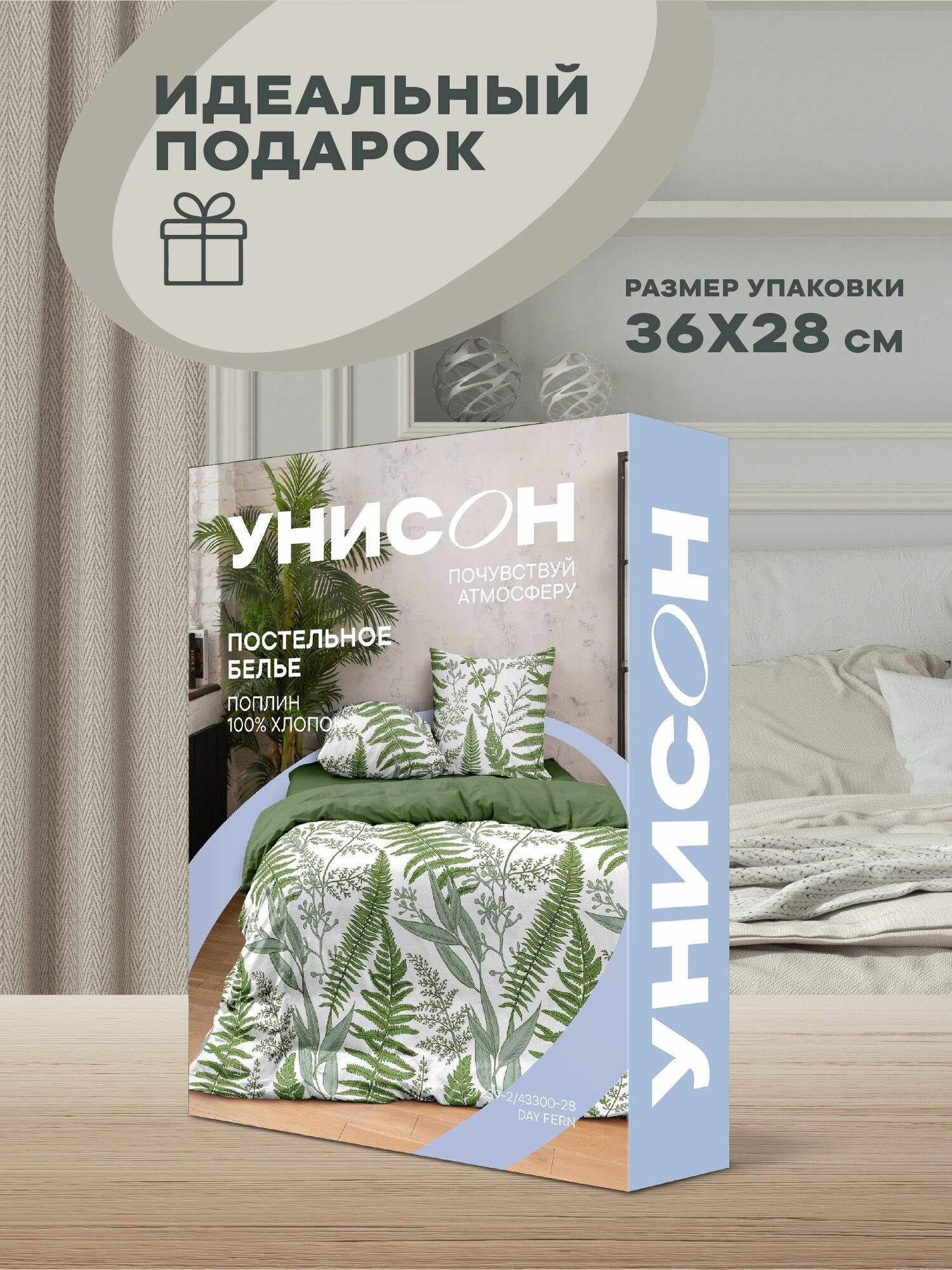 Купить Унисон Комплект постельного белья, Поплин, Семейный, с двумя 2 пододеяльниками 145х215, наволочки 70х70, Day Fern