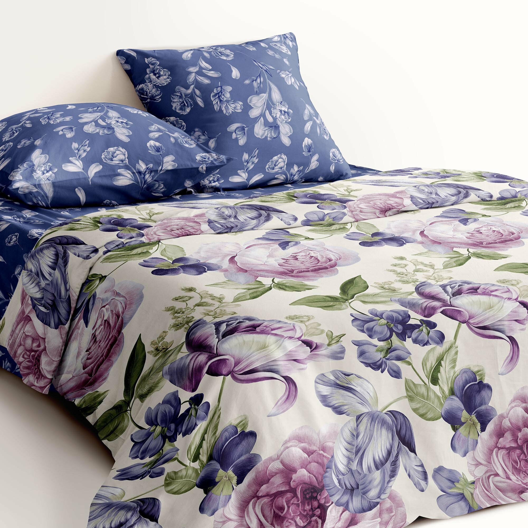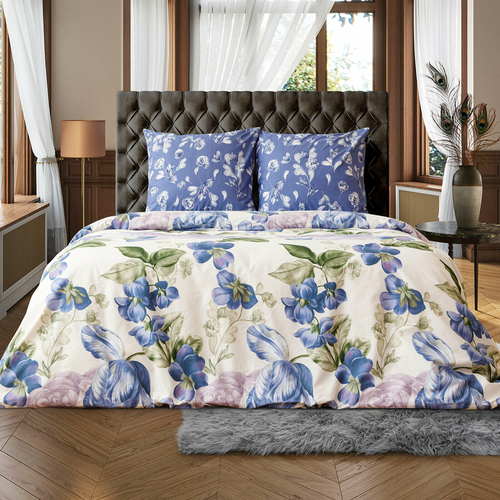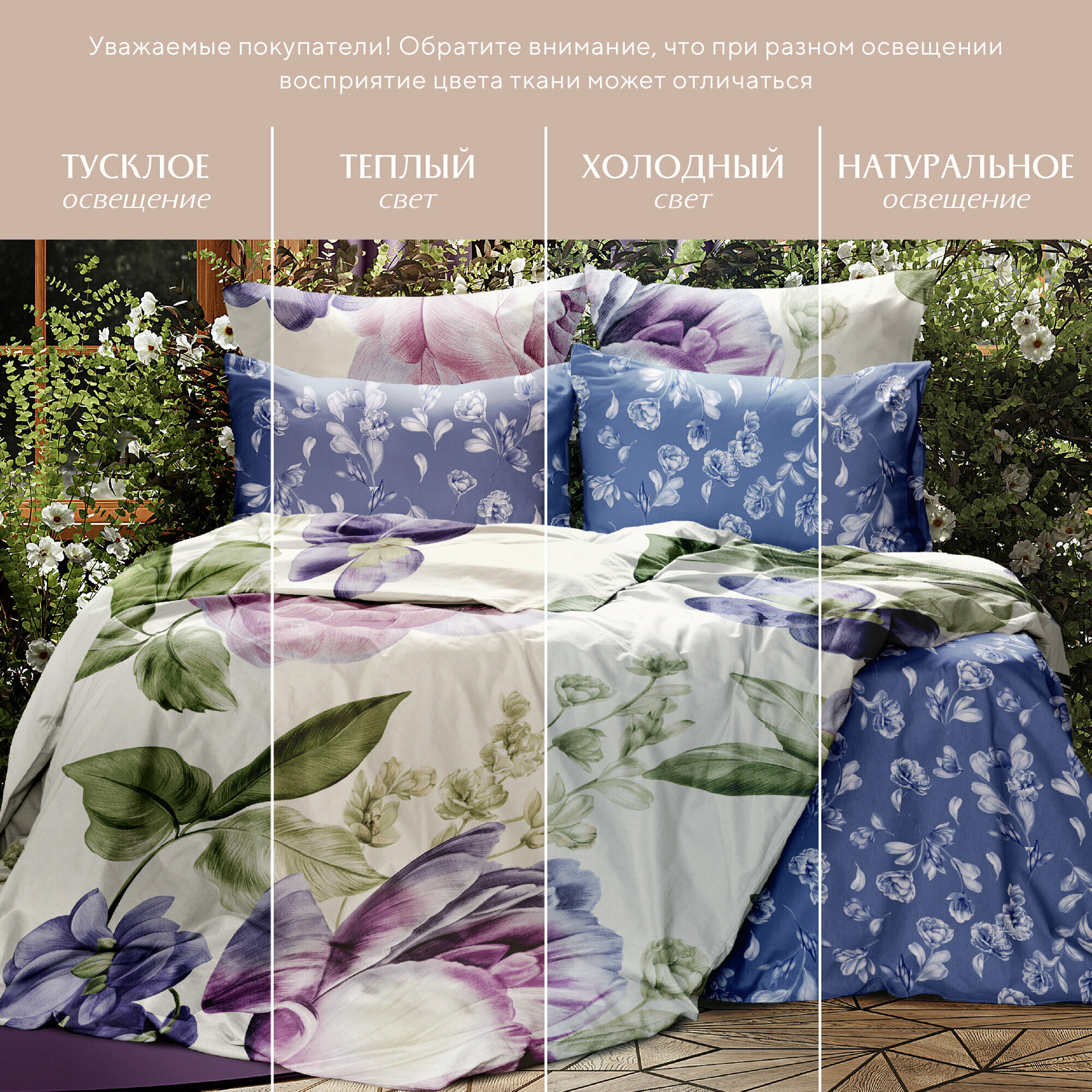 Постельное белье Евро Mia Cara, Перкаль, 4 нав. (50х70-2шт; 70х70-2шт), на резинке, Таинственный сад, темно-фиолетовый