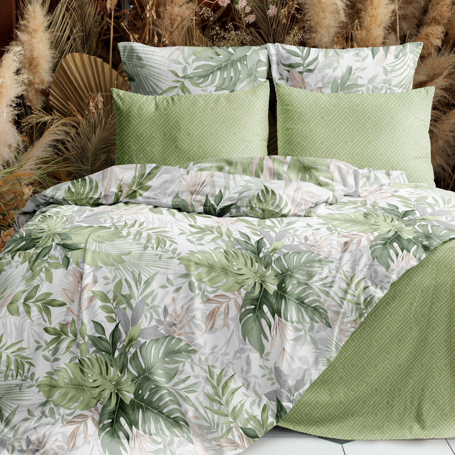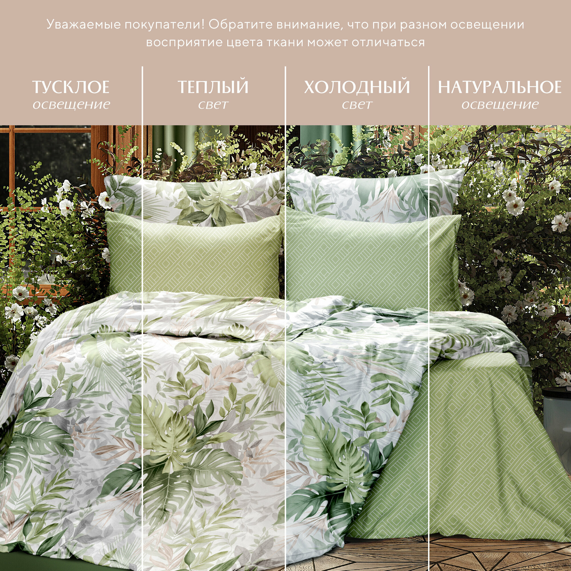 Постельное белье Евро Mia Cara, Перкаль, 4 нав. (50х70-2шт; 70х70-2шт), на резинке, Чарующий сад, пастельно-бирюзовый