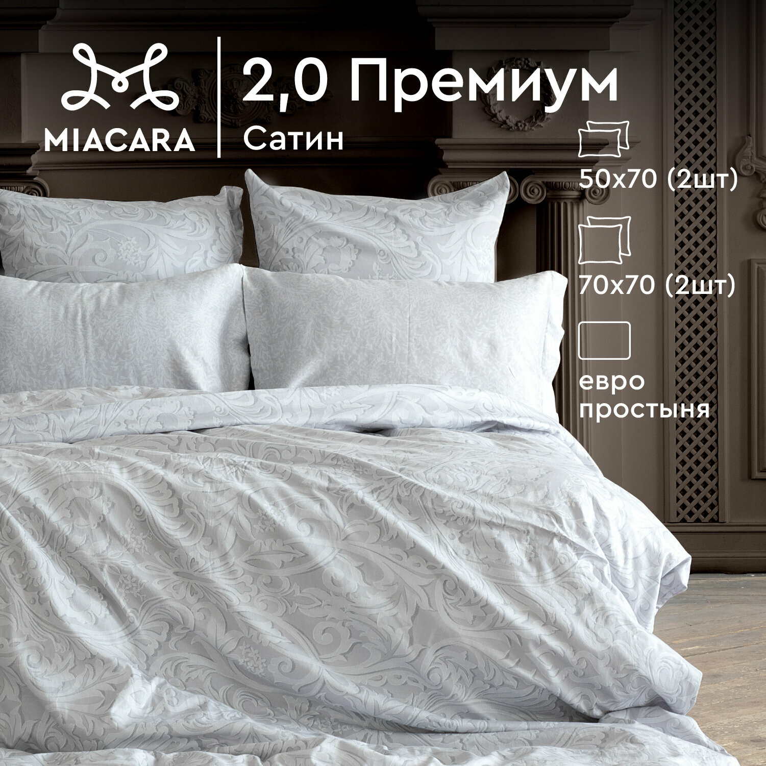 Постельное белье Евро Mia Cara, Сатин, 4 нав. (50х70-2шт; 70х70-2шт), на резинке, Innamorato (Storia D'Amore)