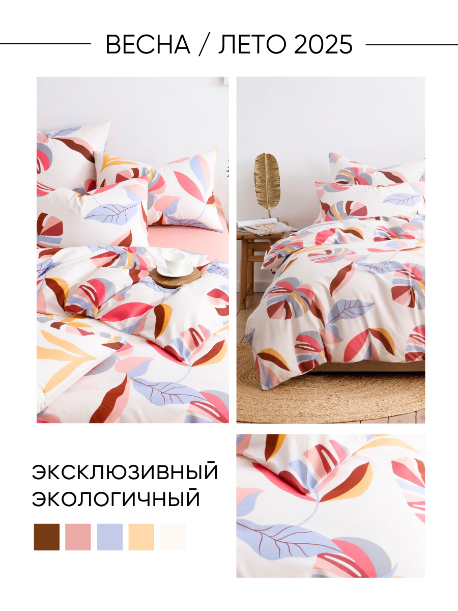 Постельное белье Евро комплект, наволочки 70х70 ТМ Ночь Нежна Тропическое бохо, 100% хлопок, ткань поплин