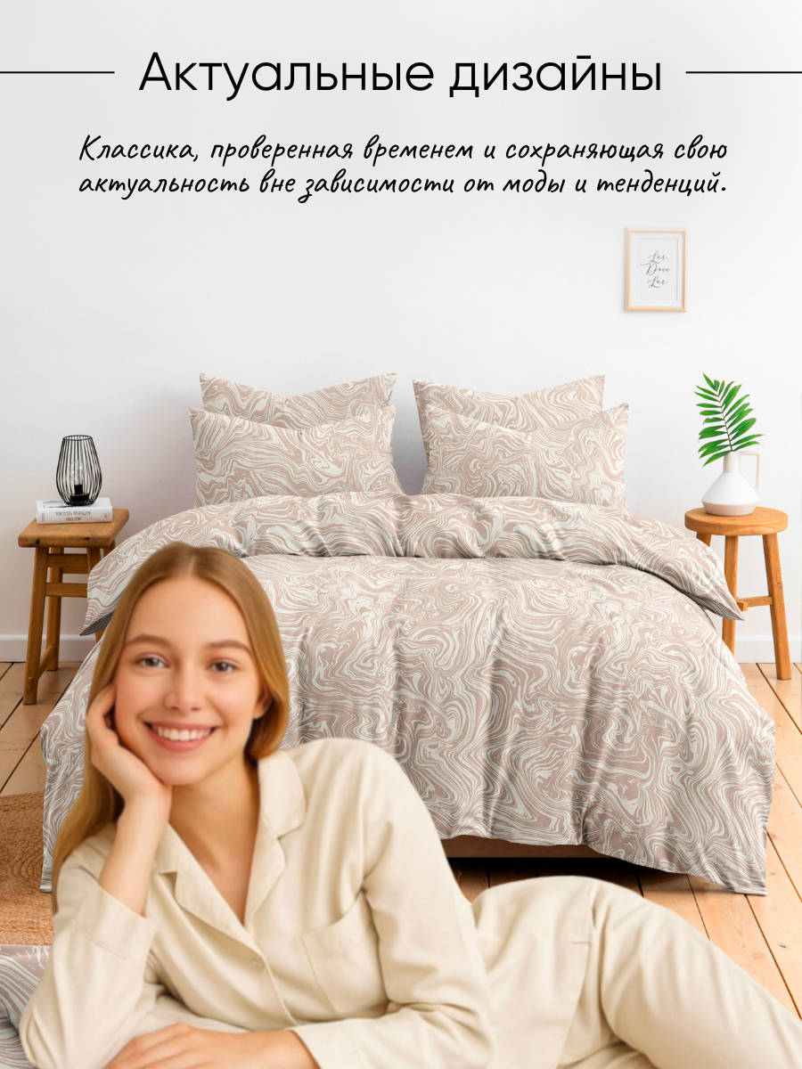 Постельное Белье из Поплина гл/кр Семейное 70х70 (2), Ночь Нежна Латте 603+602