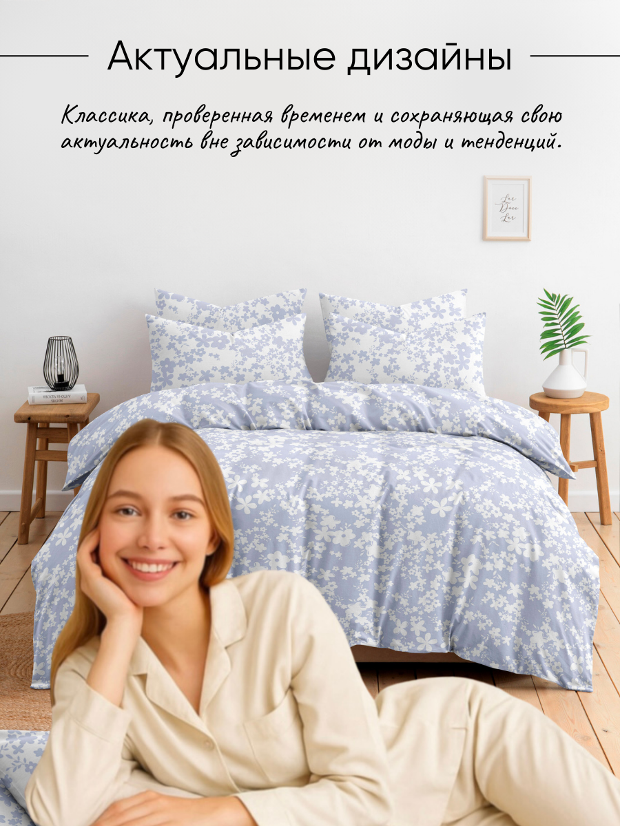 Постельное белье 2-спальное с европростыней Поплин (2 наволочки 70х70) Ночь Нежна Одри 71204-1+71205-1