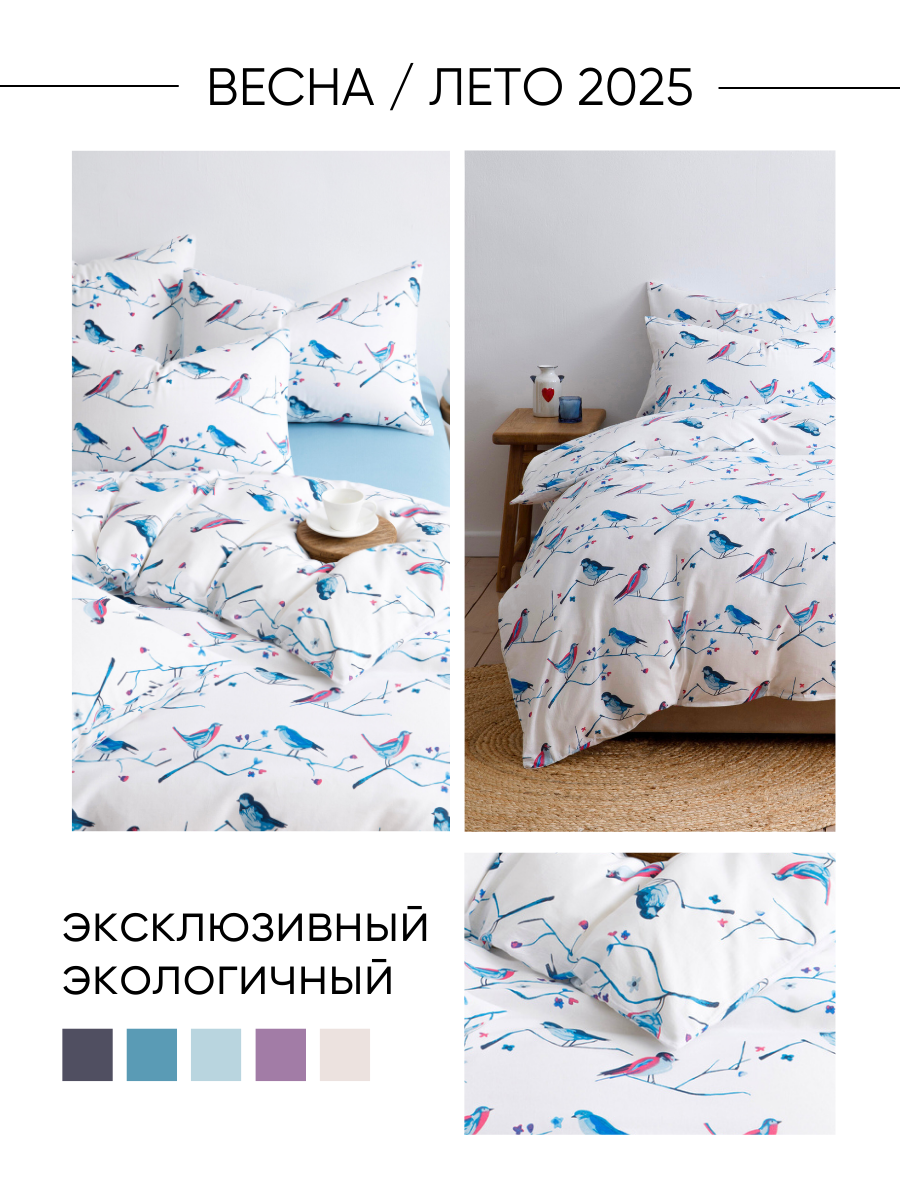 СохранитьПостельное белье 1 5 спальное Ночь Нежна, Birds, 2 наволочки 70х70, ткань бязь, 100% хлопок интересное:
