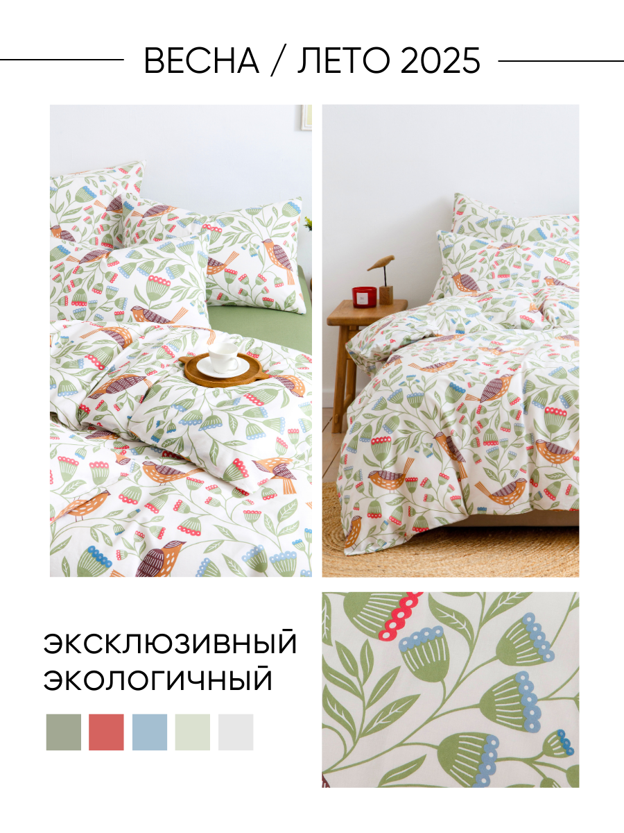 Постельное белье евро, наволочки 70х70 ТМ Ночь Нежна Весенние деревья, 100% хлопок, ткань поплин