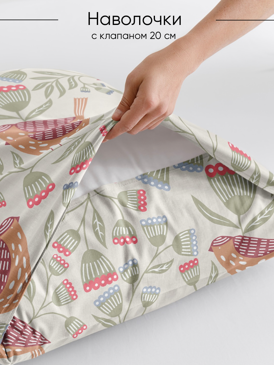 Постельное белье Ночь Нежна, Тропическое бохо, евро , 2 наволочки 70х70, ткань поплин, 100% хлопок