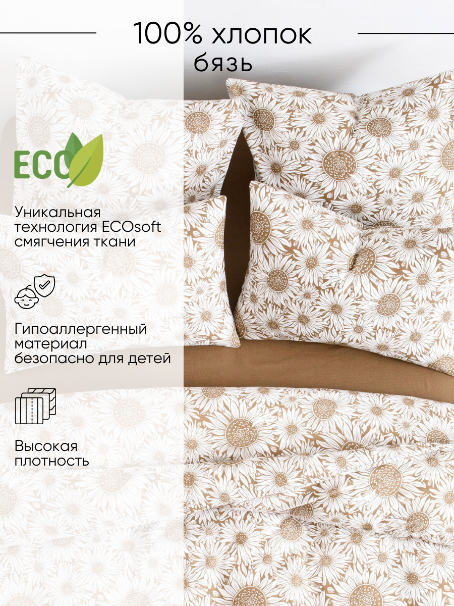 Постельное белье Евро Ночь Нежна Санфлауэр, 2 наволочки 50х70, бязь, хлопок 100%