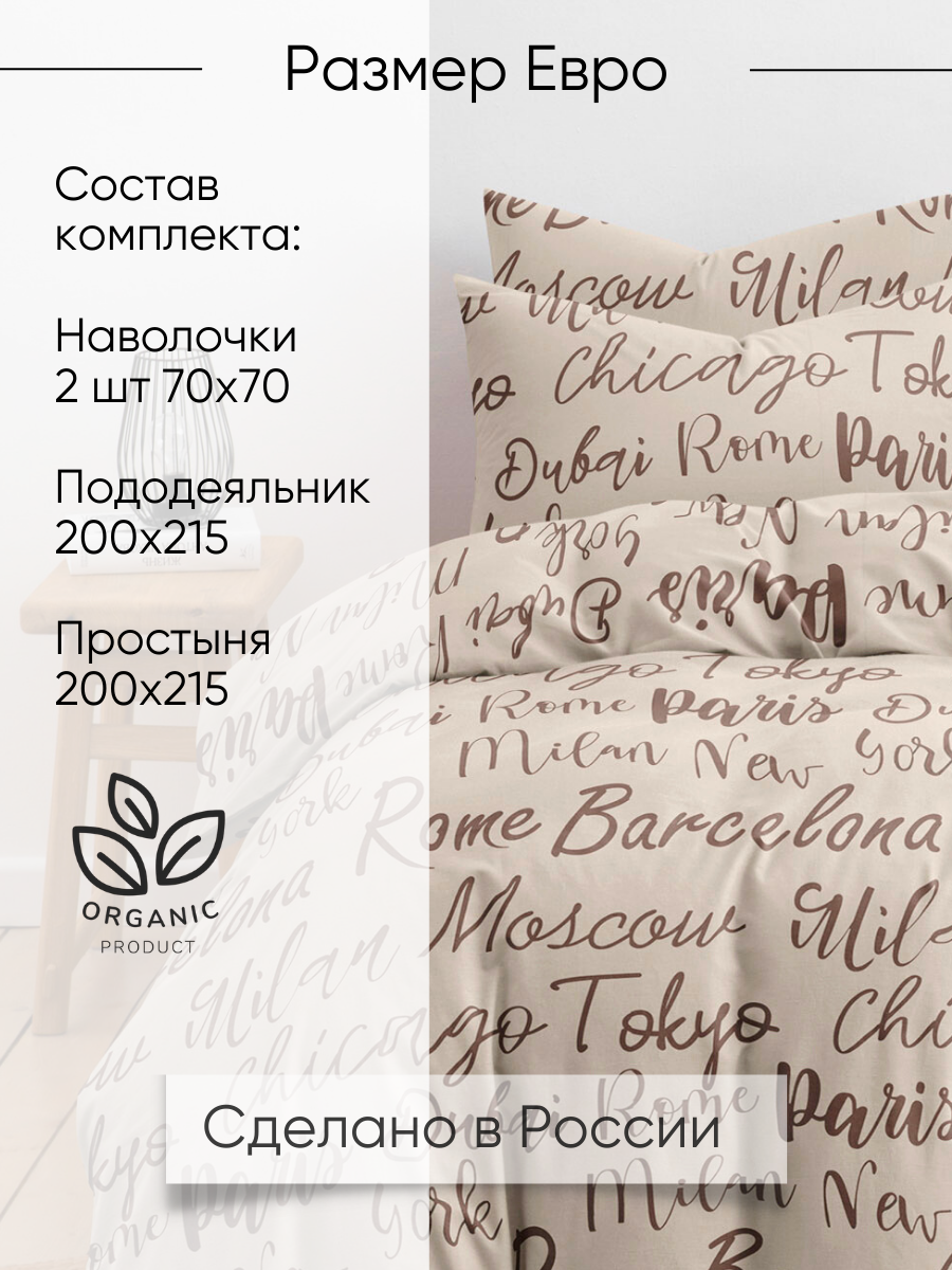 Купить Постельное белье Евро Ночь Нежна Сити, наволочки 70х70, бязь, 100% хлопок
