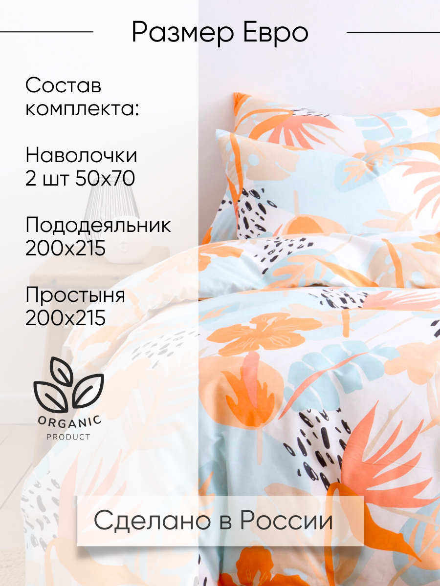 Постельное белье Евро комплект, наволочки 70х70 ТМ Ночь Нежна Тропическое бохо, 100% хлопок, ткань поплин
