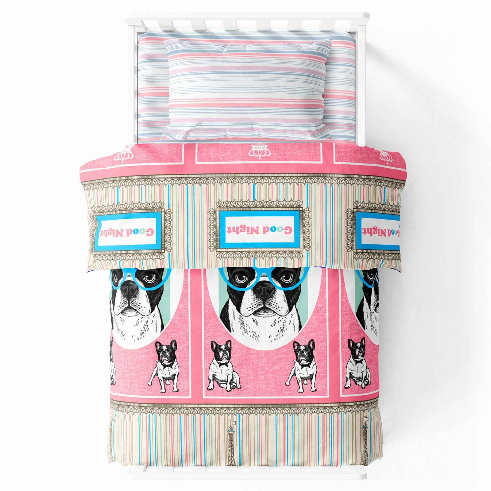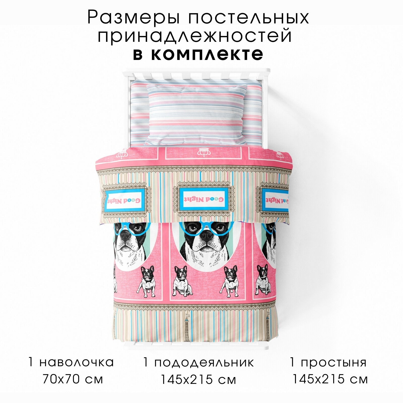 Купить Постельное белье 1 5 спальное детское Ночь Нежна Модный бульдог, наволочки 70х70, 100% хлопок, ткань поплин