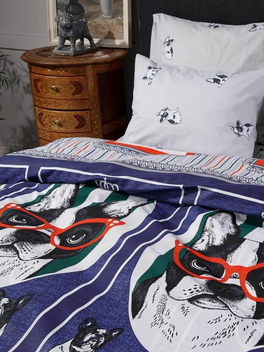 Постельное белье 1 5 спальное детское Ночь Нежна Модный бульдог, наволочки 50х70, 100% хлопок, ткань поплин
