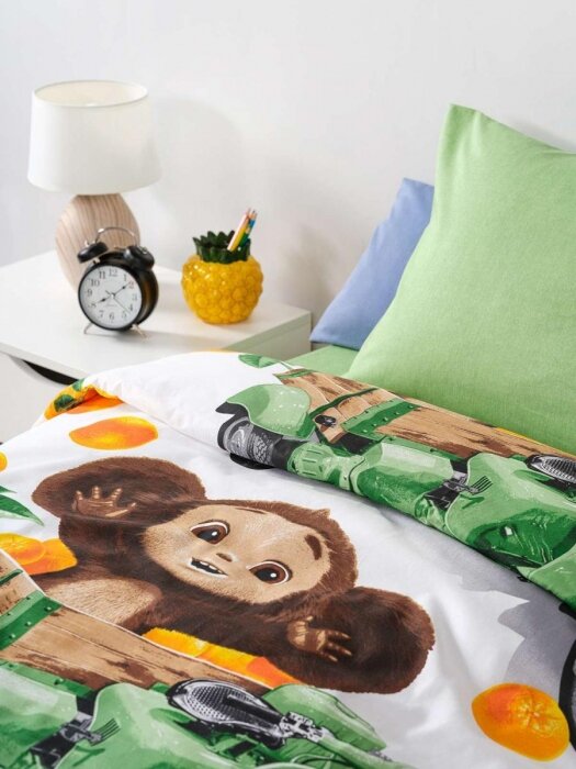 Постельное белье 1 5 спальное детское Ночь Нежна Чебурашка Апельсиновый друг, наволочка 50х70, 100% хлопок, ткань поплин
