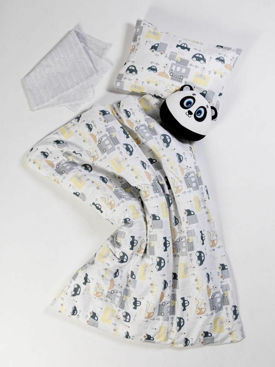 Купить Постельное белье Ясельное в кроватку, одна наволочка 40х60, простыня 110х140, пододеяльник 110х140, КПБ Детское, Бязь, "Трафик" 10356-1+10357-1