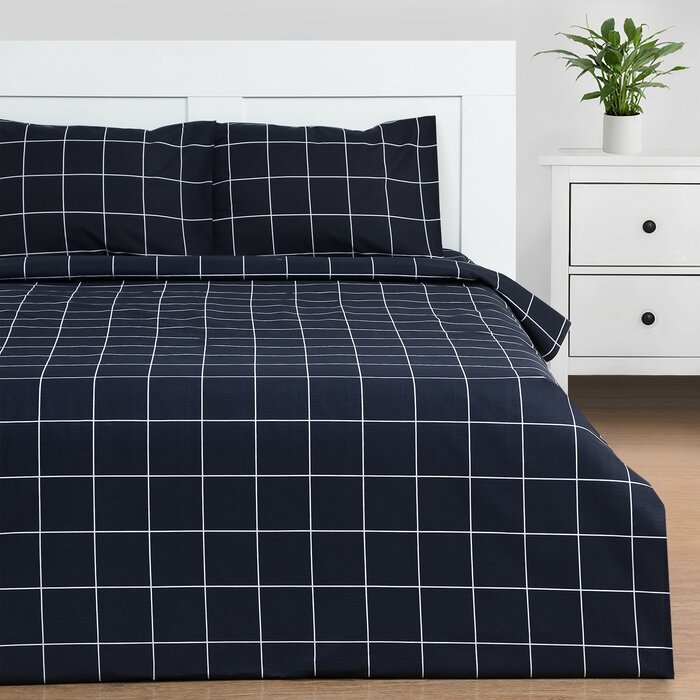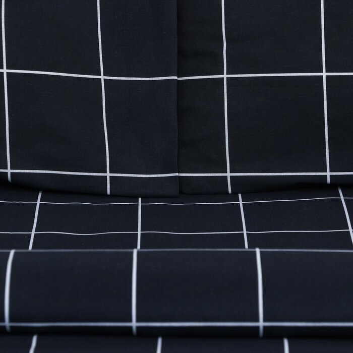 Купить Постельное бельё Этель дуэт "Клетка" цвет чёрный 143х215-2 шт, 220х240, 50х70-2 шт, бязь, 125 г/м2