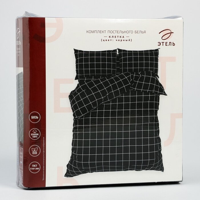 Постельное бельё Этель евро "Клетка" цвет чёрный 200х215, 220х240, 50х70-2 шт, бязь, 125 г/м2