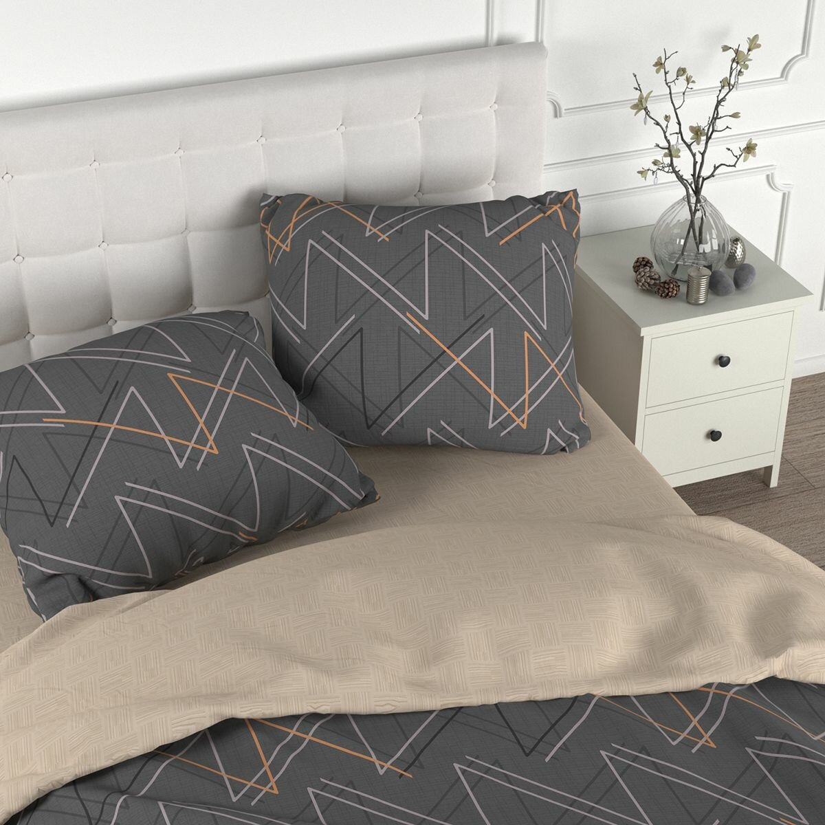 Постельное белье 1.5 спальное, наволочки 70х70 Для Snoff, 100% хлопок, сатин, Гефио