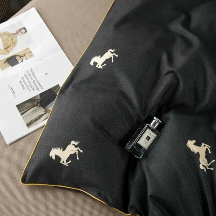 Купить Комплект постельного белья ALANNA Евро Сатин - Черный Лошади / Пододеяльник 200x220 см. / Простыня 220x240 см.