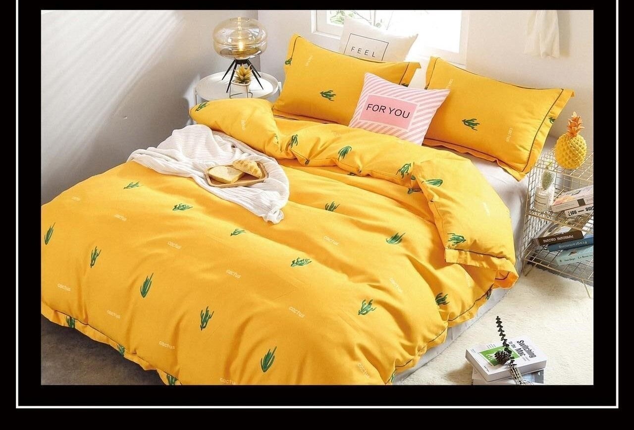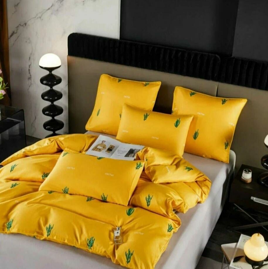 Купить Комплект постельного белья ALANNA Евро Сатин - Желтый-Кактус / Пододеяльник 200x220 см. / Простыня 220x240 см.