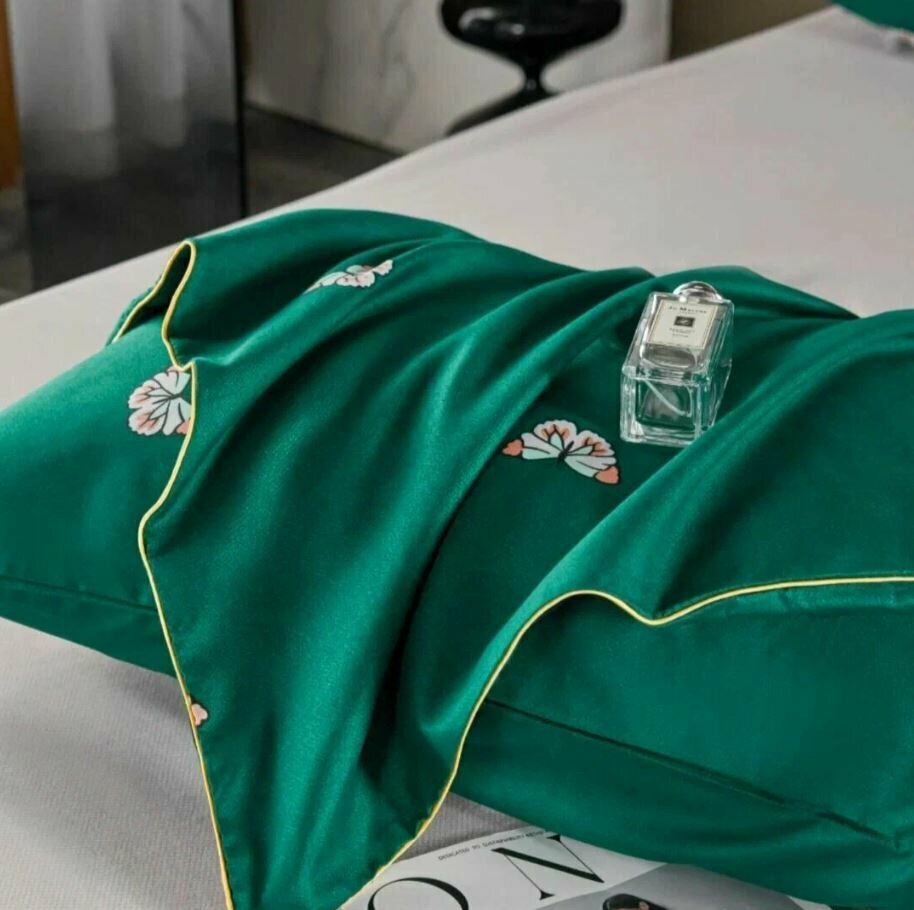 Комплект постельного белья ALANNA Евро Сатин - Зеленый Листья Клена /Пододеяльник 200x220 см. / Простыня - 220x240 см.