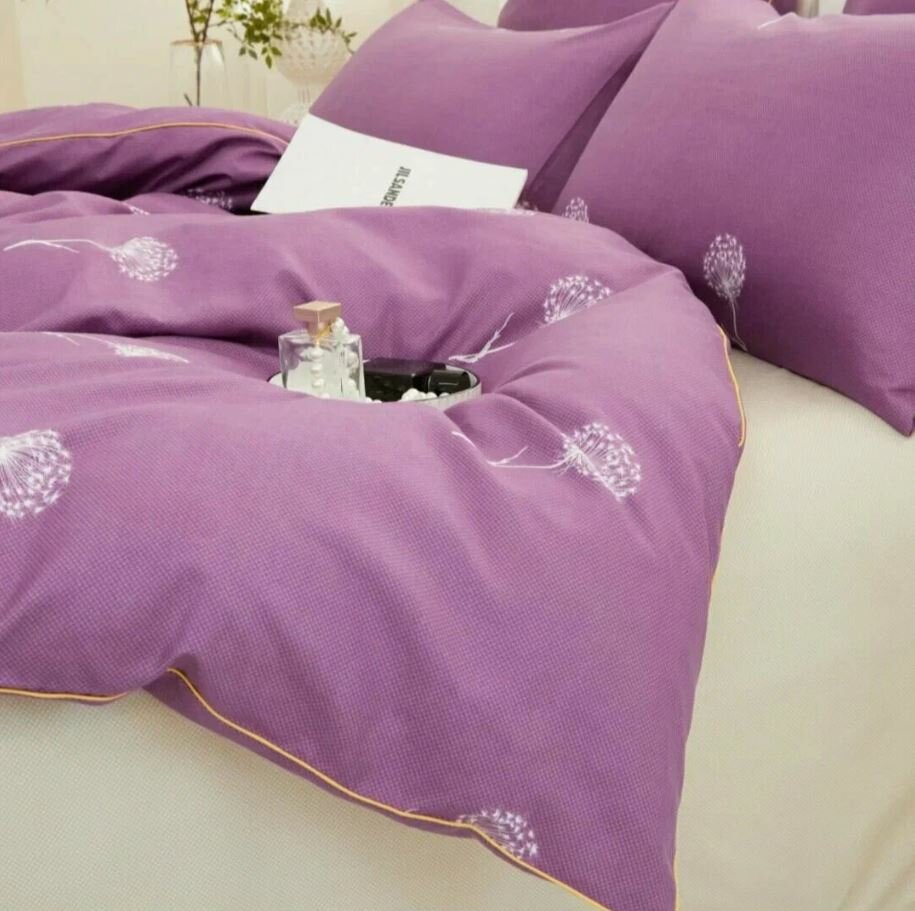 СохранитьКомплект постельного белья ALANNA Евро Сатин - Фиолетовый-Одуванчики /Пододеяльник 200x220 см. / Простыня 220x240 см. интересное: