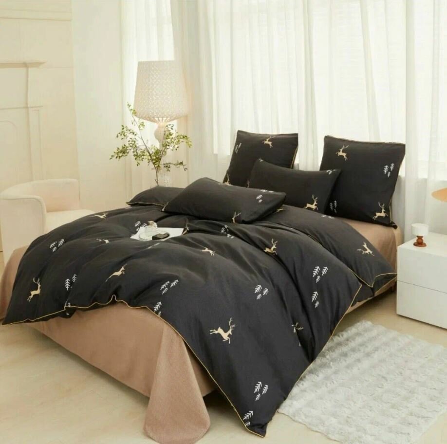 Комплект постельного белья ALANNA Евро Сатин - Черный - Олень / Пододеяльник 200x220 см. / Простыня 220x240 см.