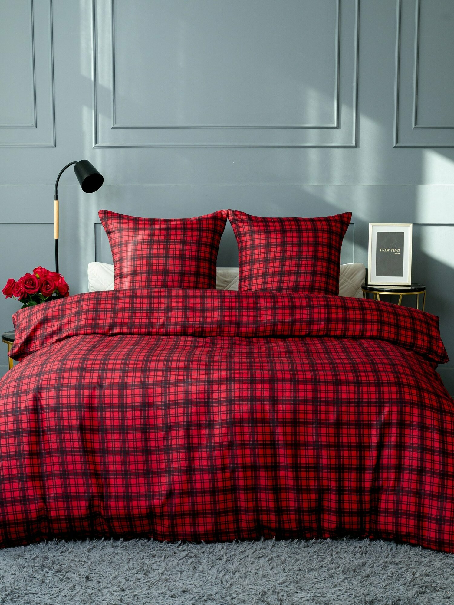 Постельное белье евро макси Павлина Клетка, Полисатин, наволочки 70x70