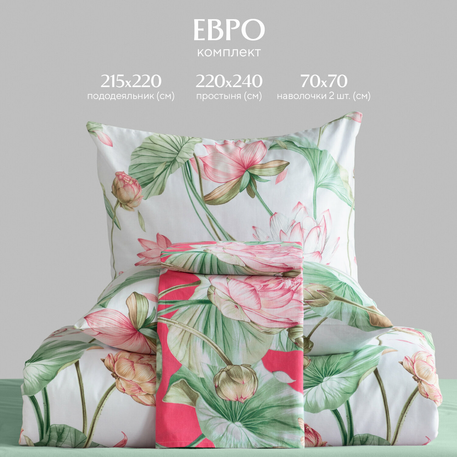 Постельное белье Евро Mia Cara, Бязь, наволочки 70х70, Белый лотос интересное: