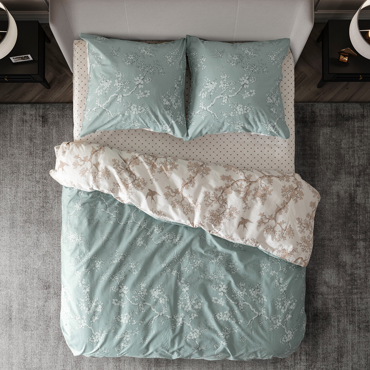 Купить Постельное белье Евро Mia Cara, Поплин, 4 нав. (50х70-2шт; 70х70-2шт), на резинке, Chinoiserie mentolo (Dolce Vita)