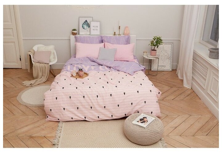 Постельное белье 1.5 спальное (1.5 спальный) Этель Violet love 143*215 см, 150*214 см, 70*70 см - 2 шт, бязь 125 г/м2