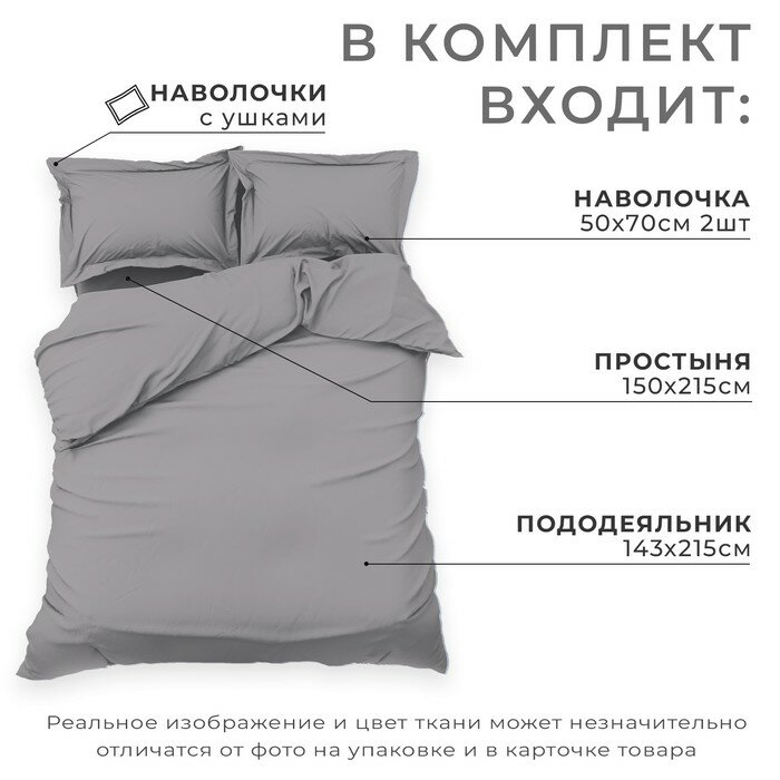 Постельное бельё Этель Дуэт Grey sky 143х215-2шт, 215х240, 50х70+3-2 шт, мако-сатин, 114г/м2, 9144565