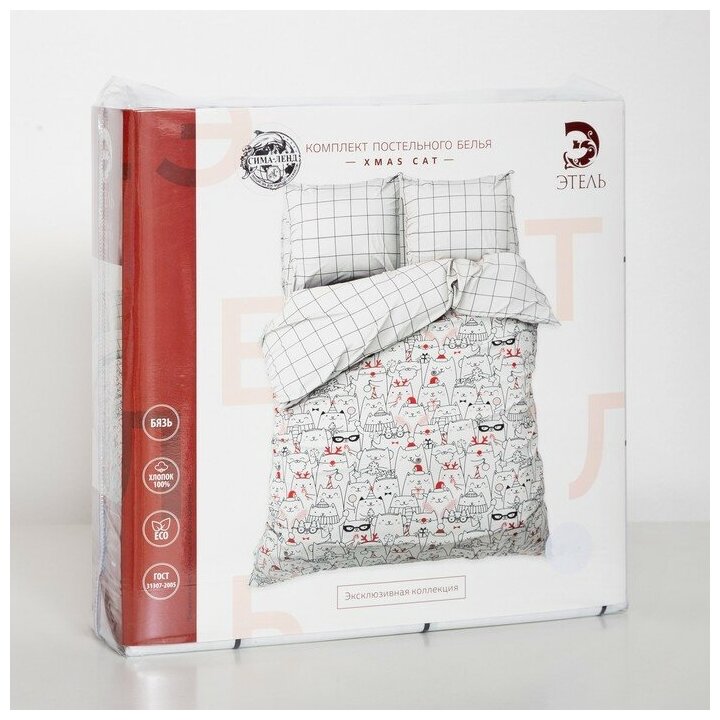 Купить Новый год. Постельное белье Этель 1.5 сп Xmas cat 143*215 см, 150*214 см, 70*70 см - 2 шт