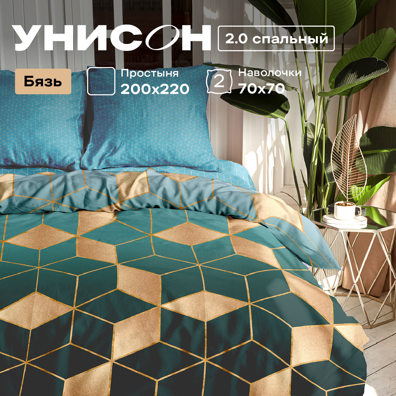 СохранитьПостельное белье 2 спальное Унисон, Бязь, нав. 70х70, Cubes интересное: