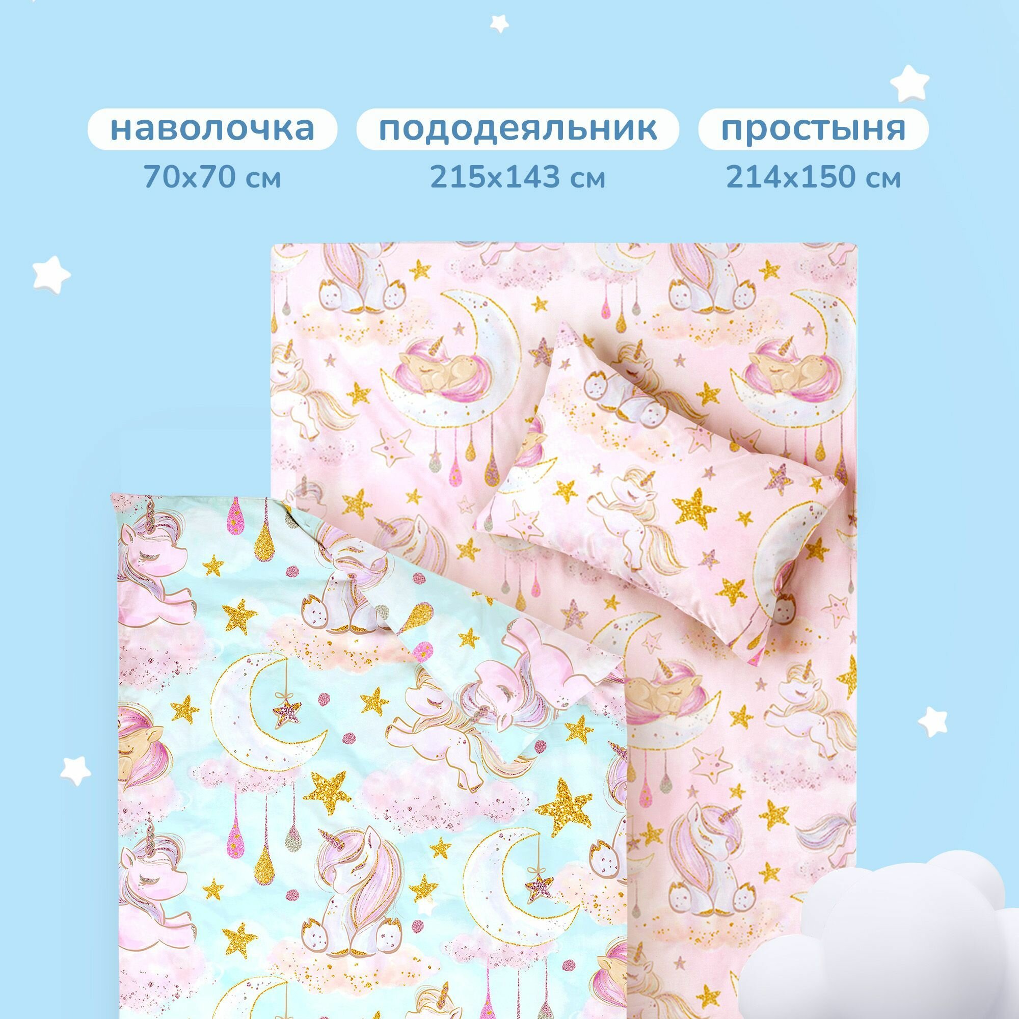 СохранитьДетское Постельное белье 1.5 спальное Juno, Поплин, нав. 70х70, Сказочные единороги (Unicorns) интересное: