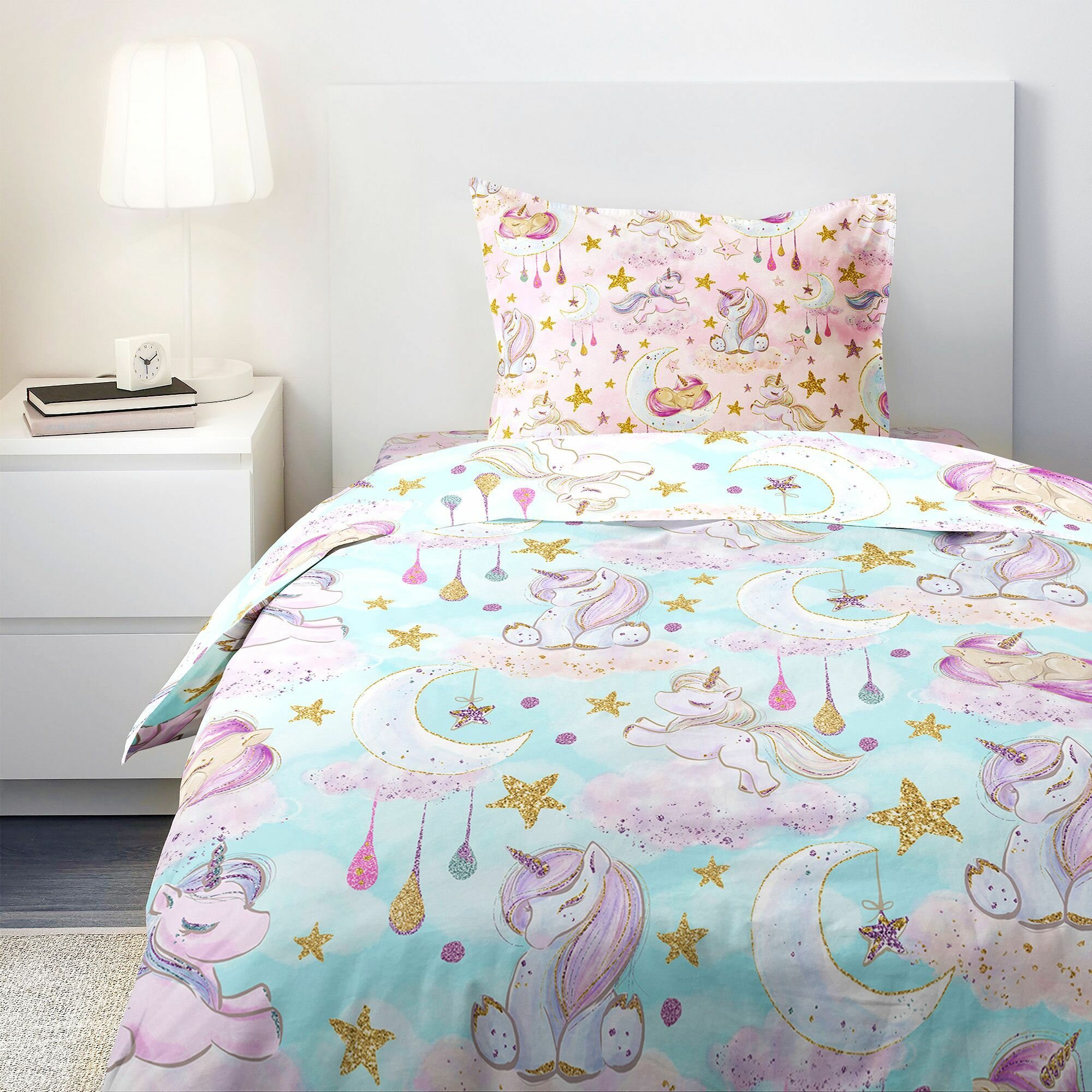 Детское Постельное белье 1.5 спальное Juno, Поплин, нав. 50х70, Сказочные единороги (Unicorns)