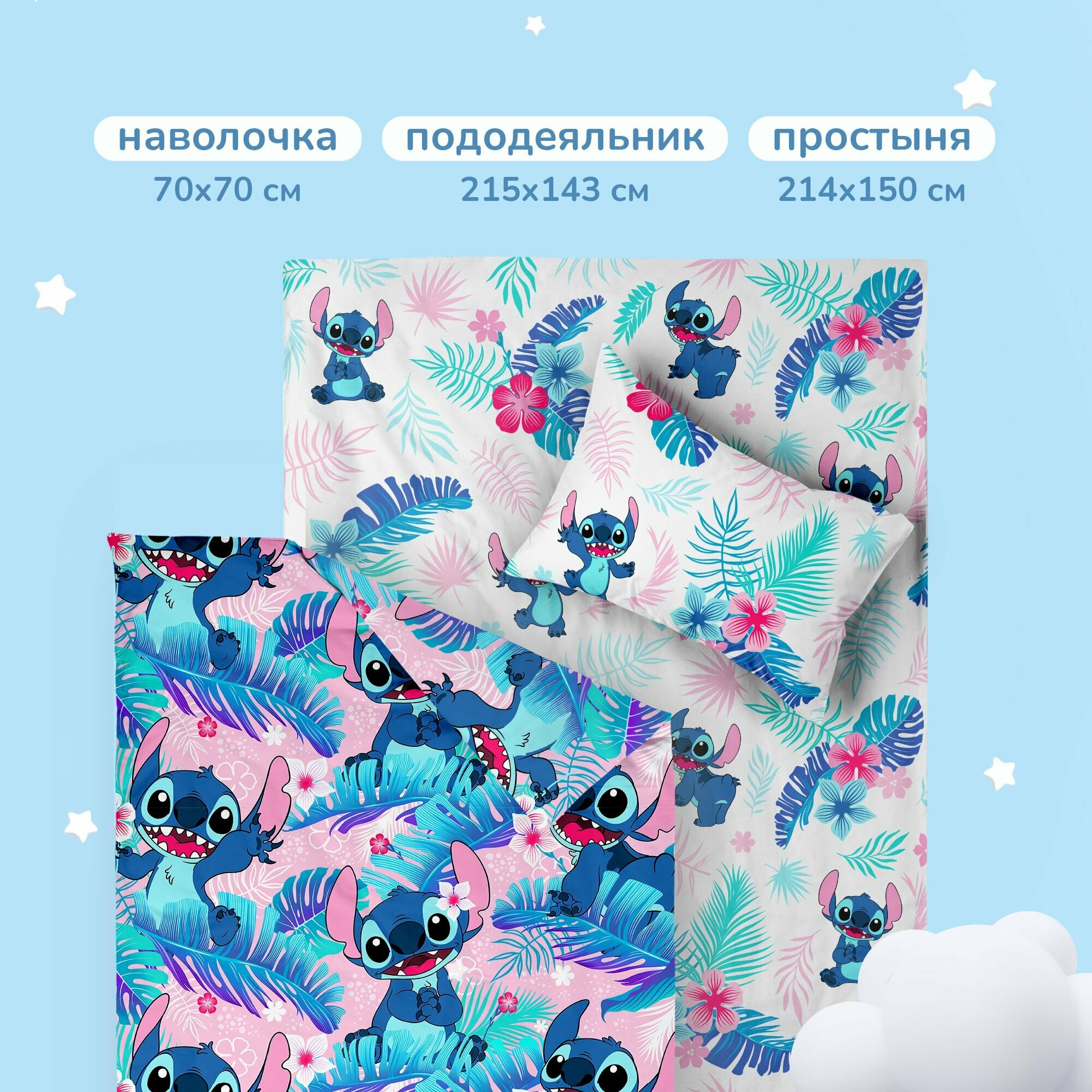 СохранитьДетское Постельное белье 1.5 спальное Juno, Поплин, нав. 70х70, Стич (Пикачу) интересное: