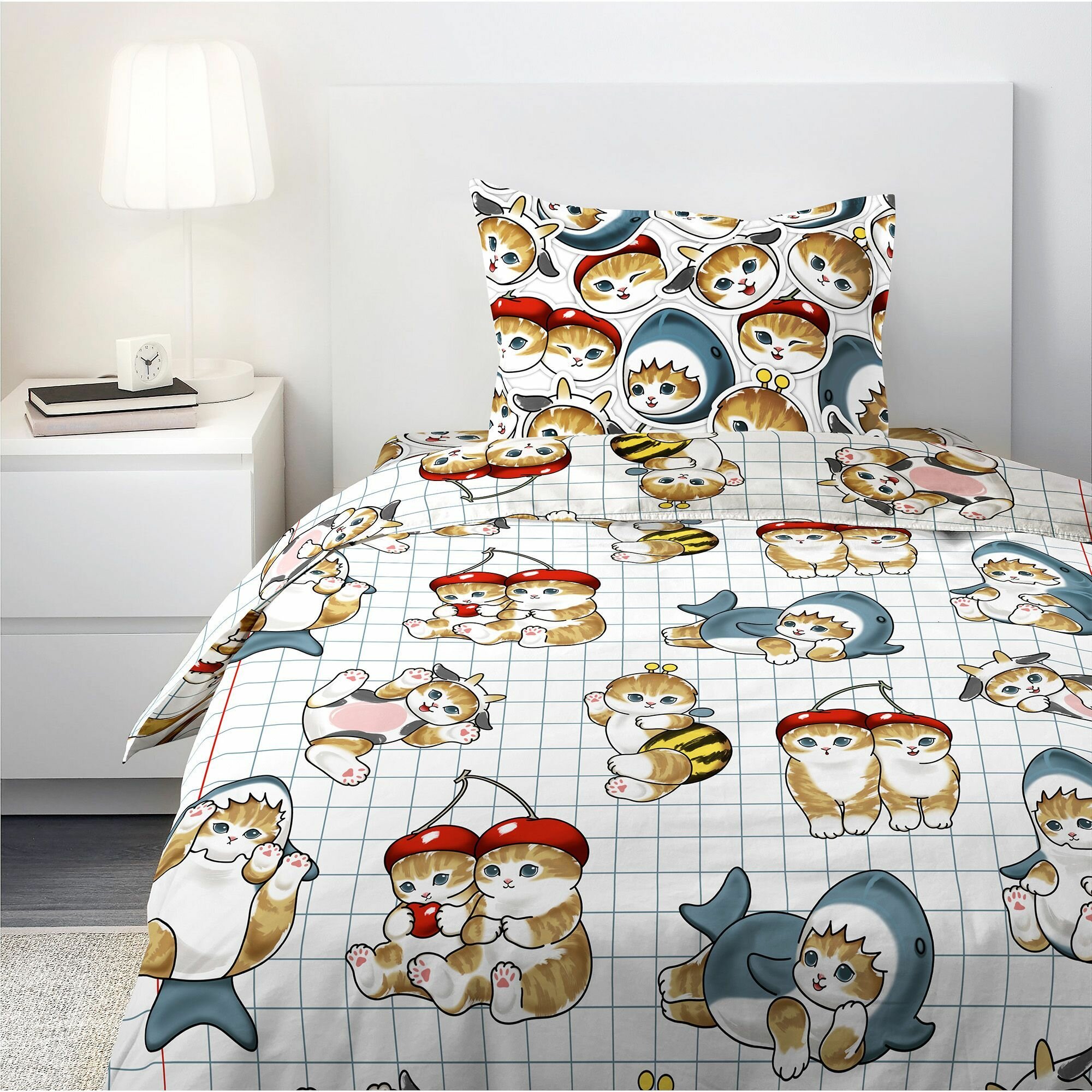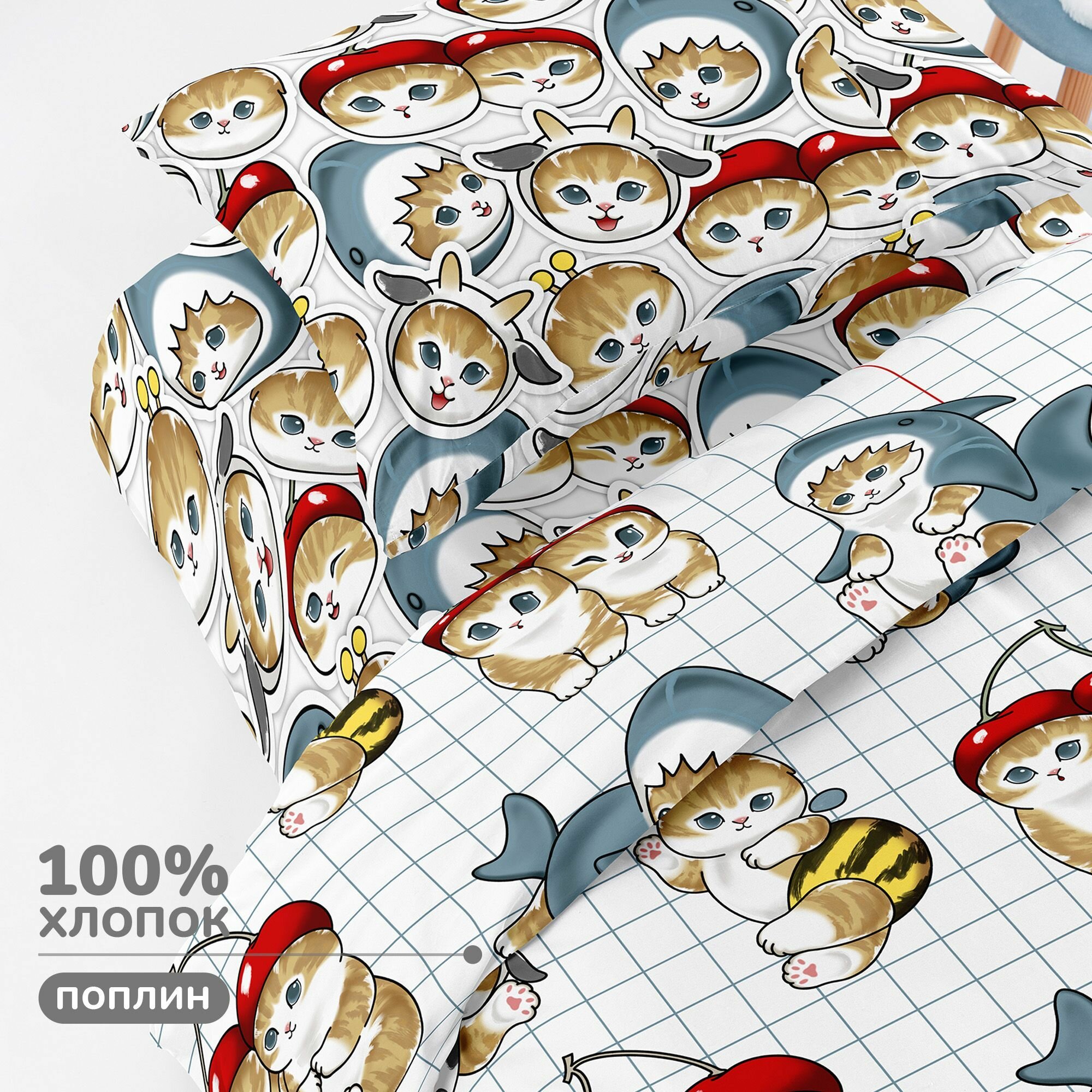 СохранитьДетское Постельное белье 1.5 спальное Juno, Поплин, нав. 70х70, Кот акула интересное: