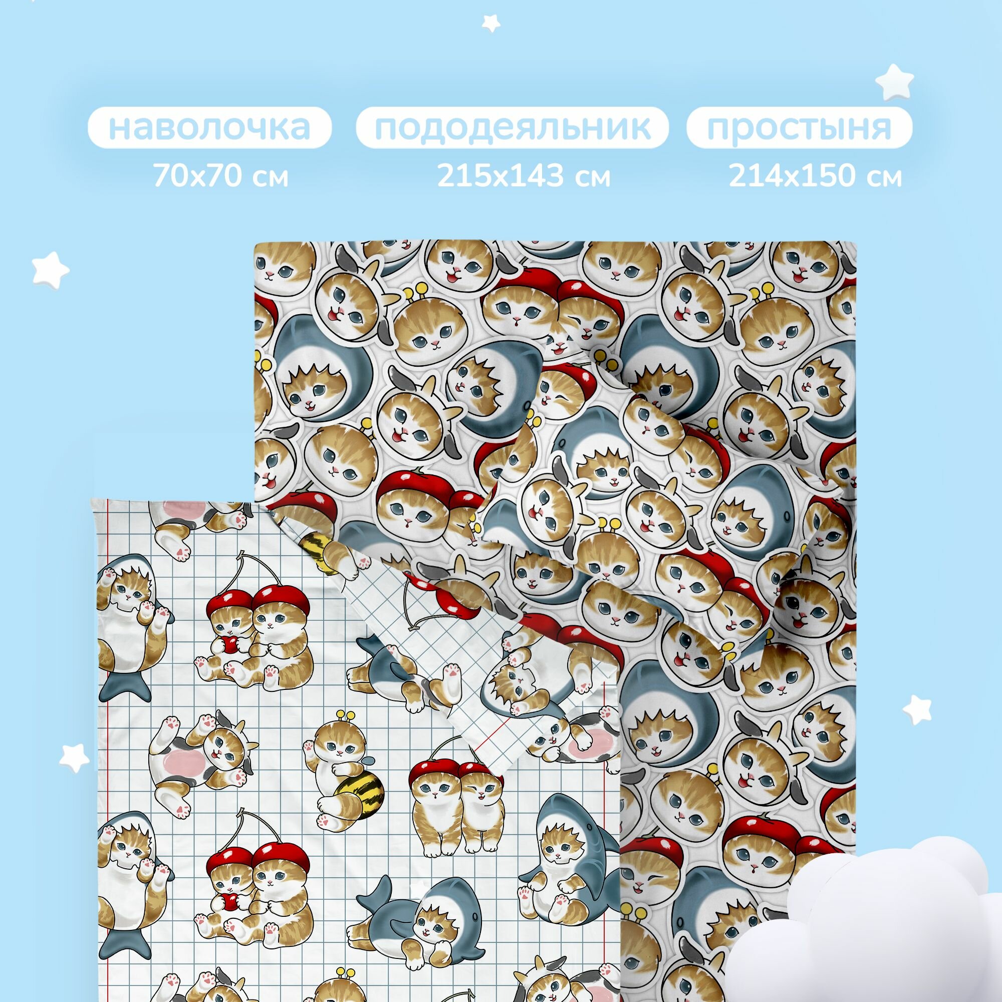 Детское Постельное белье 1.5 спальное Juno, Поплин, нав. 70х70, Kawaii cats