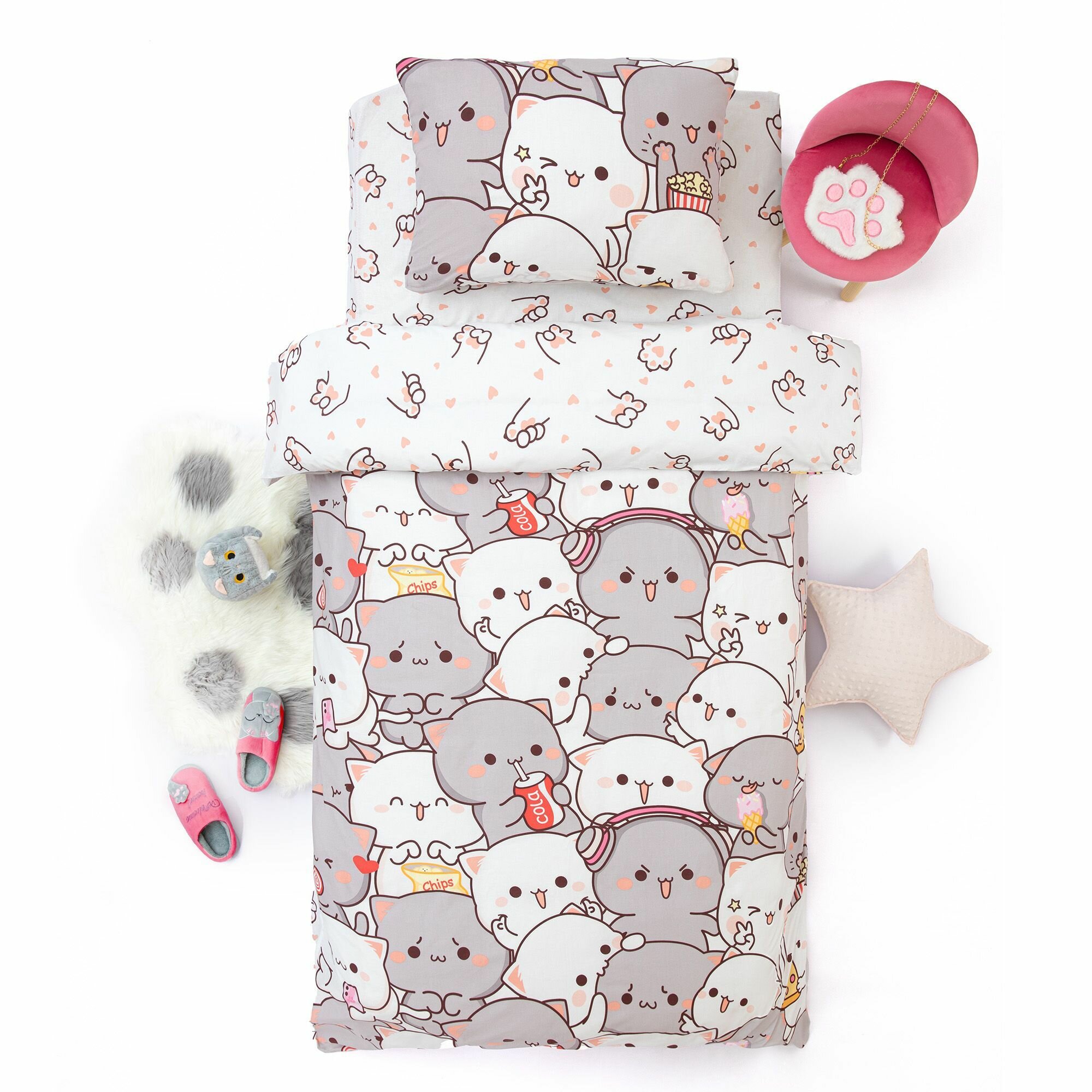 Купить Детское Постельное белье 1.5 спальное Juno, Поплин, нав. 70х70, Kawaii cats