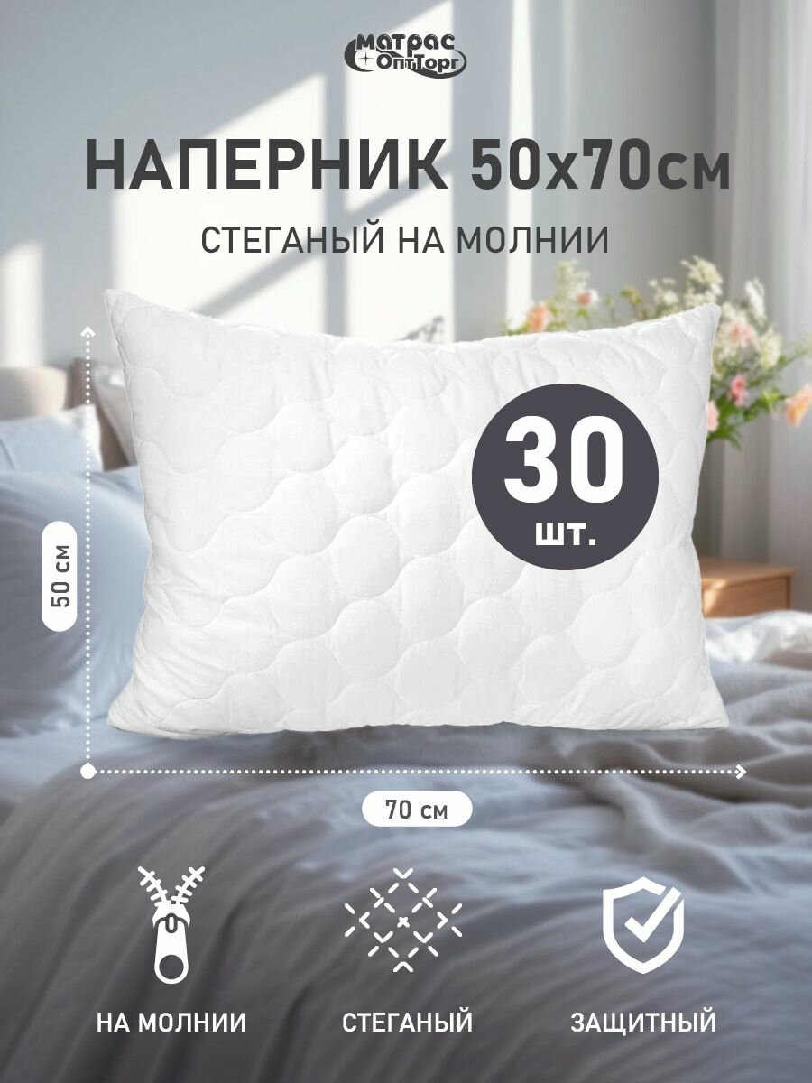 СохранитьНаперник 50х70 на молнии стеганый, защитная наволочка для подушки, 30шт интересное: